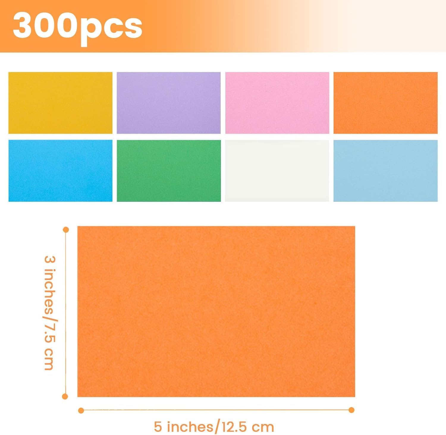 - What You’ll Get: You will receive 300 index cards bulk in 8 vibrant colors, measuring 3 x 5 inches. Perfect for school, office, or home use