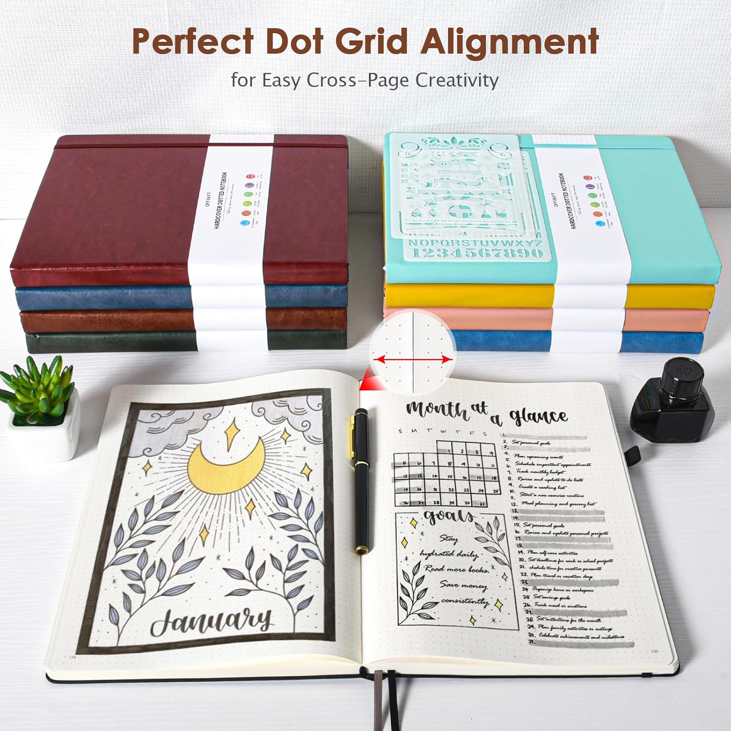 - 【Tailored for Bullet Journaling Lovers】Our UPGRADED dot journal notebook includes SPECIFIC FEATURES such as index, key, and test pages, making it stand out in the market, surpassing other ordinary dotted notebooks. The thoughtful design is perfect for both green-hand and experienced journalists. Your ideas deserve a notebook as professional as this.