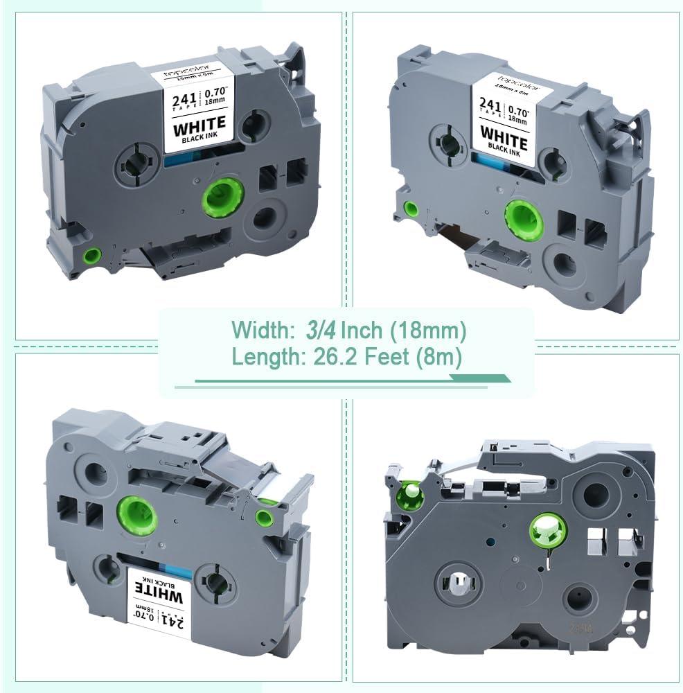 - Package Content: 8-Pack 18mm label maker tape compatible with Brother Tze241 Tze-241 Tz 241 Tz241 Tz-241 3/4" p touch label tze tz tape 18mm 0.7" Laminated White. Size: 3/4 inch (18mm 0.7") x 26.2 feet (8m). Color: Black on White