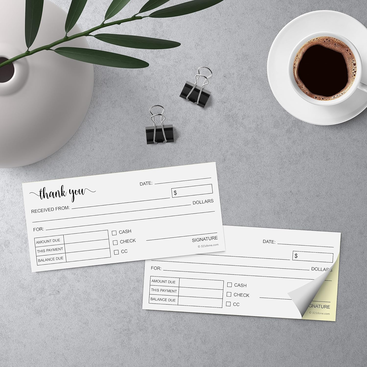 321Done 2-Part Carbonless Thank You Receipt Book, 2.75x6 Pocket Size, Made in USA, Cute Handheld Duplicate Copy Order Form for Craft Boutique Business (50 Sets) White/Yellow