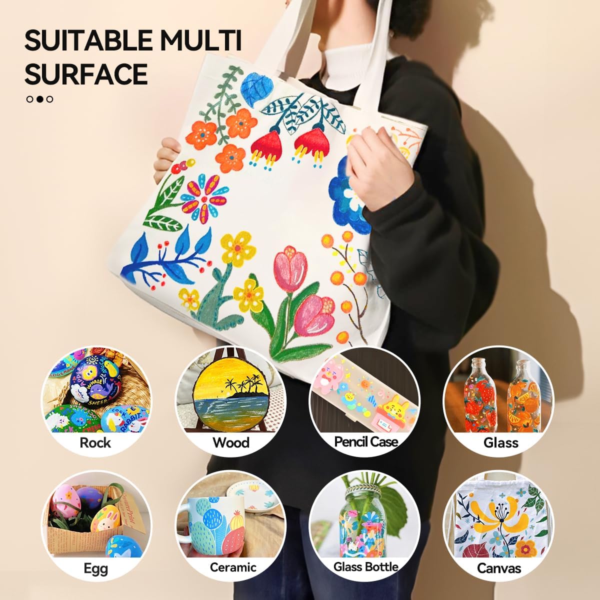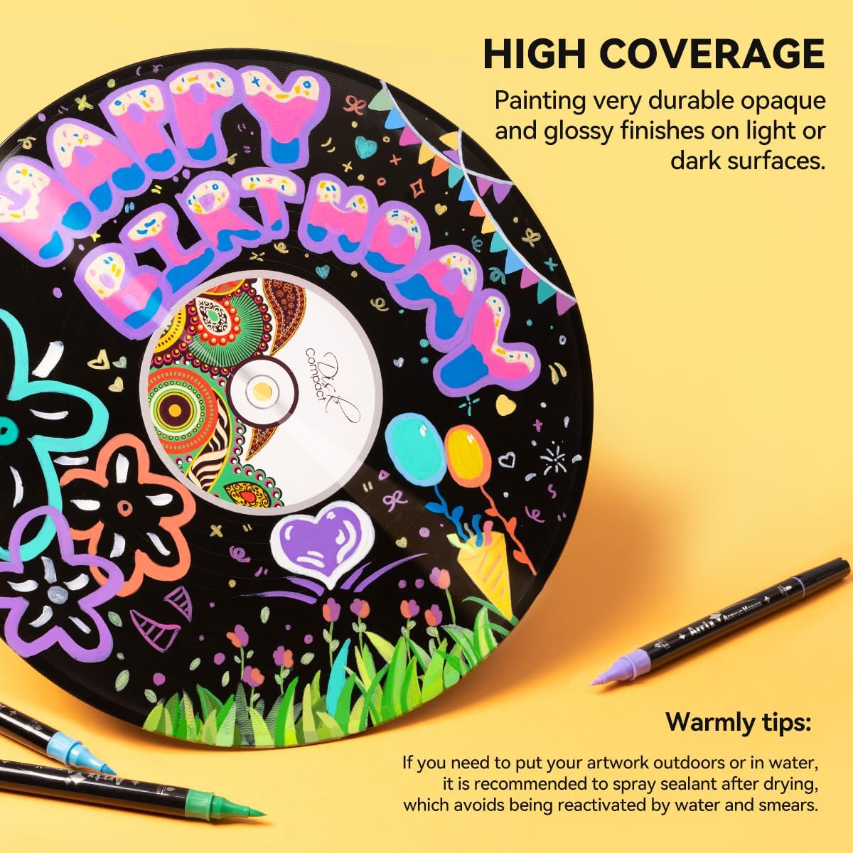 - Non-Toxic & Safe ] - Arrtx acrylic paint markers are water-based, so colors won't smudge or fade, and dry quickly and permanently you can enjoy your masterpiece for years to come. With high-quality certificated ink, odorless and non-toxic makes these painting pens are very safe for adults to let their imagination run wild.