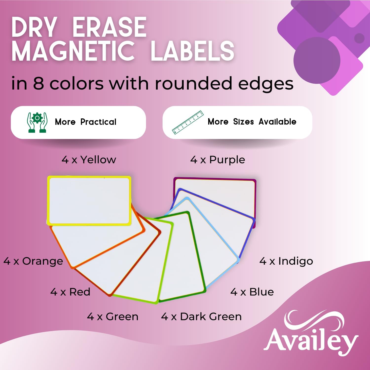 Availey 32 Pieces (3 x 5") - Colored Border Magnetic Dry Erase Labels - Reusable Strips for Classroom Home Office Garage Refrigerator Blank Writable Erasable Cards Name Tags Students Locker Shelf