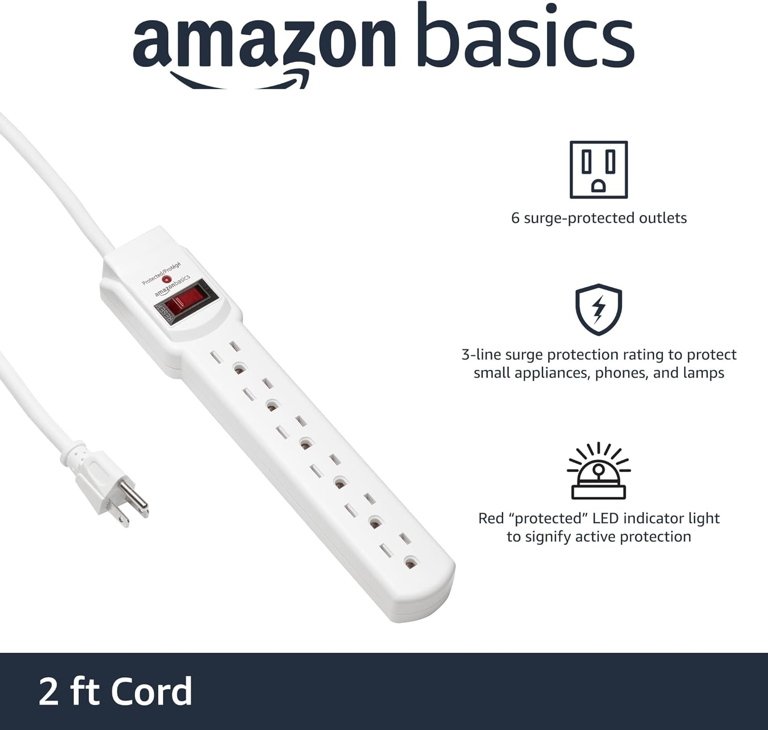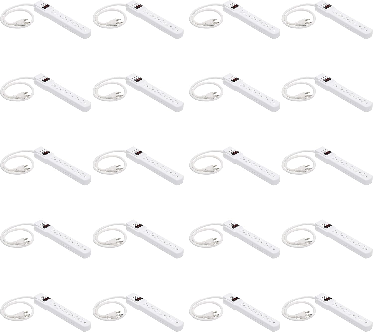 Amazon Basics Surge Protector Power Strip, 6-Outlet with 200J Protection, 2ft Extension Cord, Rectangle, White (20 Pack)