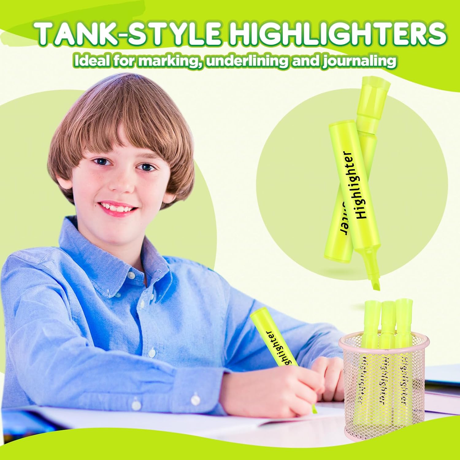 Qilery 30 Pack Highlighters Bulk, Tank Style Chisel Tip Highlighters Markers Quick Drying for Kids and Adult Coloring, Classroom Home Office School Supplies (Yellow)