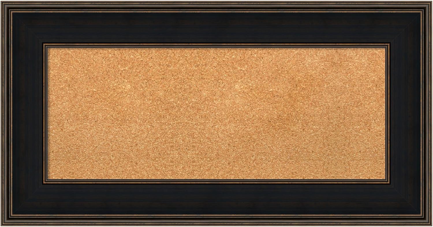 Amanti Art Natural Cork Board for Wall, 20x38 Vision Board with Brown Wood Frame, Medium Corkboard Office Decor for Home Organization, Casual Corkboard Pinboard to Display Items for Home Organization