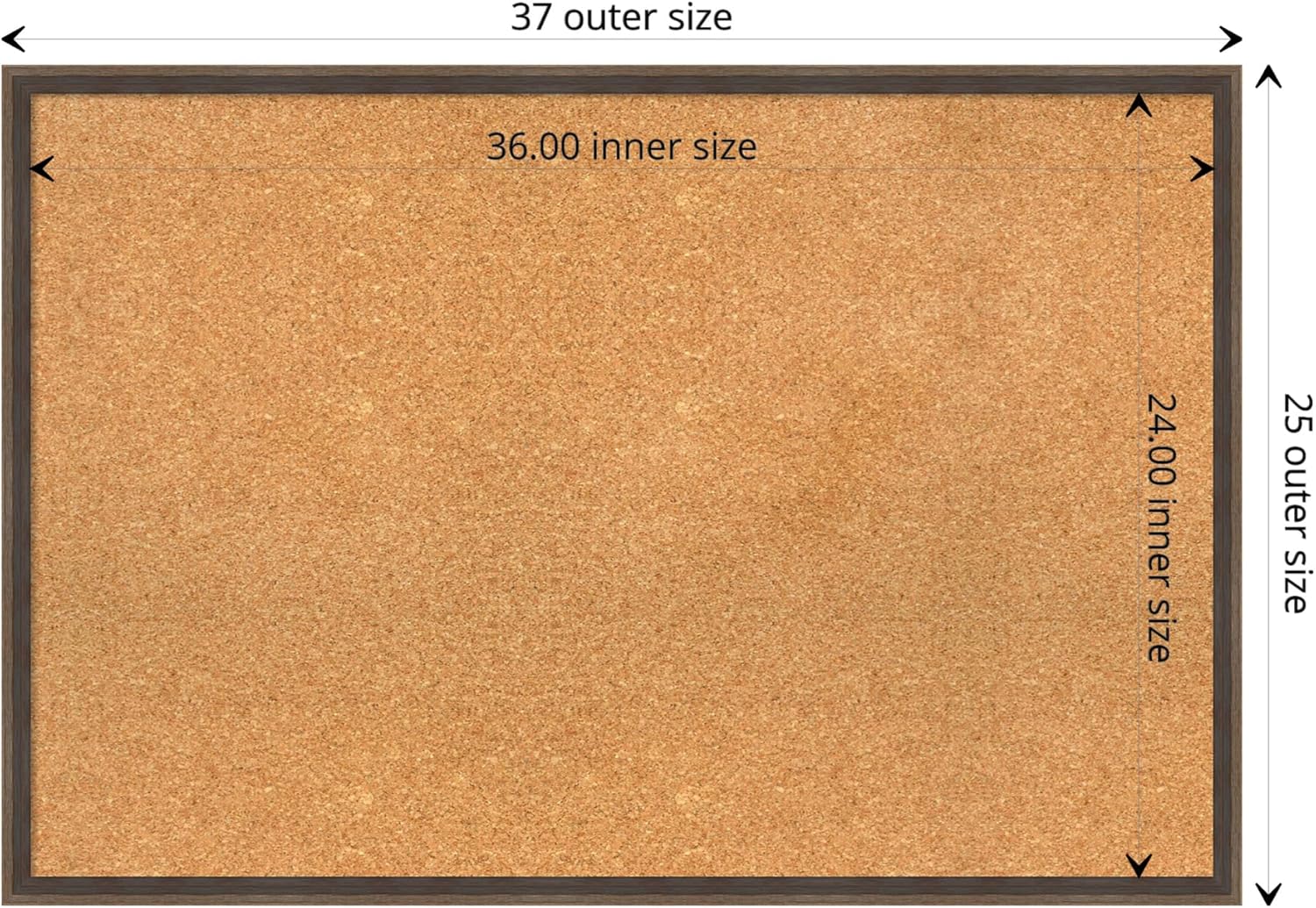 - DIMENSIONS: The overall size of this framed corkboard measures 37 in. x 25 in., including the frame. Its functional cork board area measures 36 in. x 24 in.
