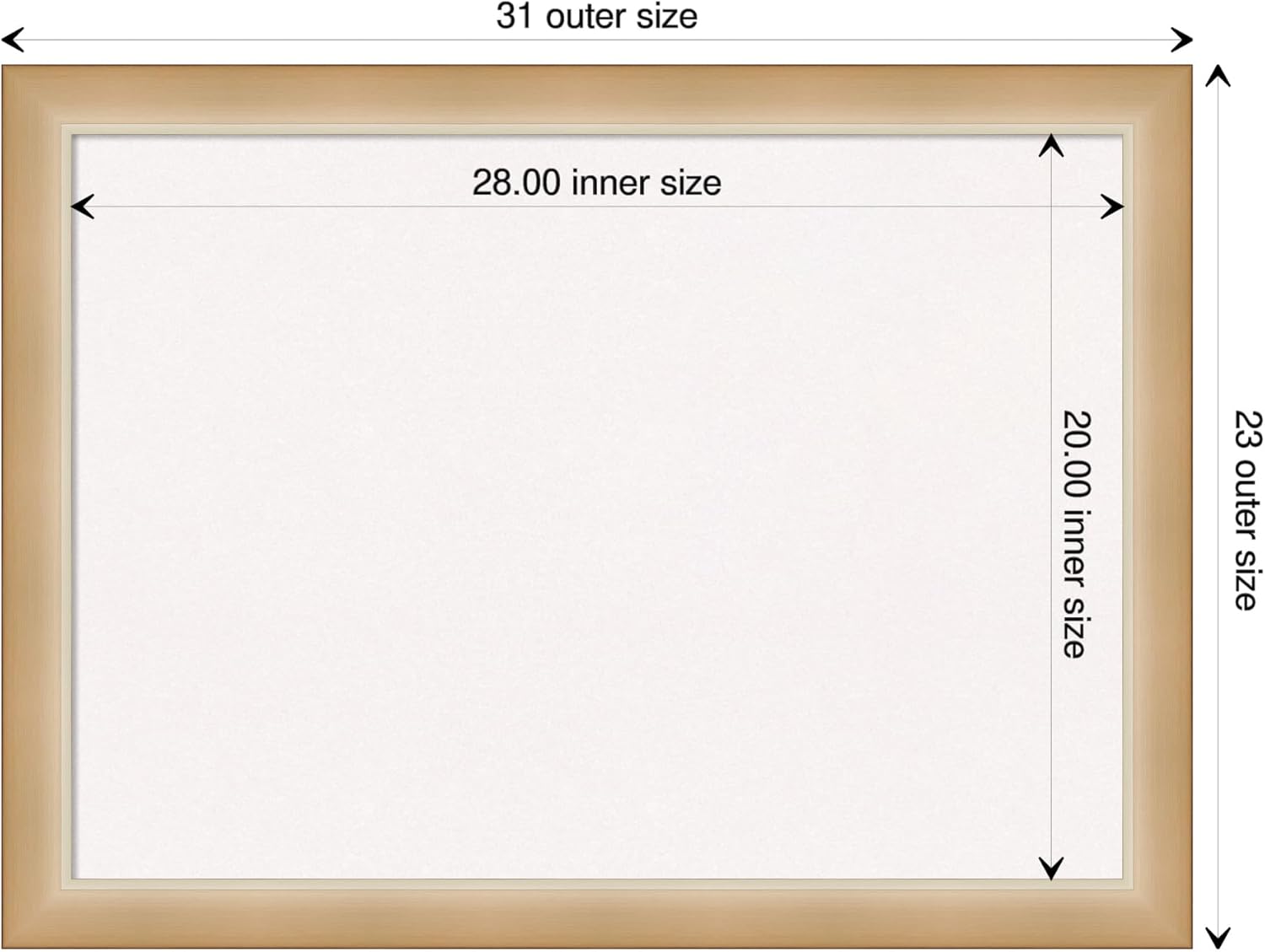- DIMENSIONS: The overall size of this framed cork board measures 31 in. x 23 in., including the frame. Its functional cork board area measures 28 in. x 20 in.