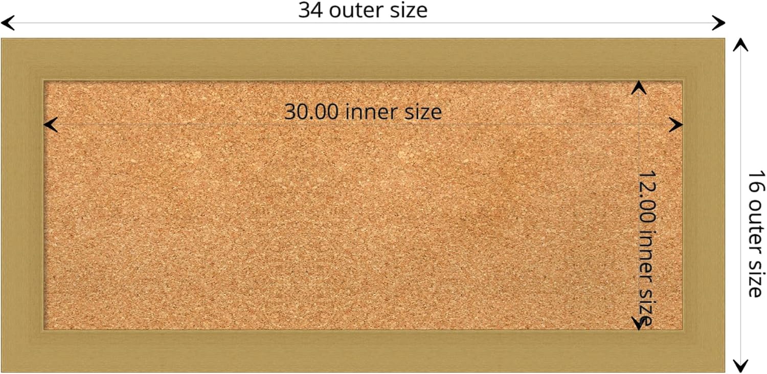 - DIMENSIONS: The overall size of this framed cork board measures 34 in. x 16 in., including the frame. Its functional cork board area measures 30 in. x 12 in.