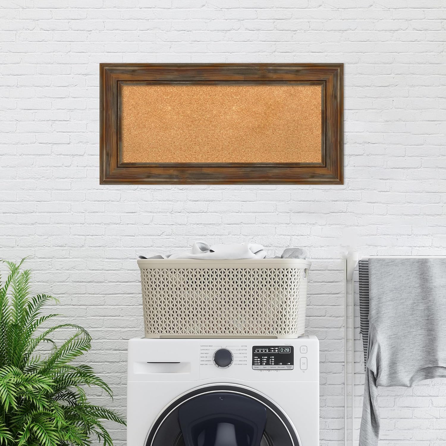 Amanti Art Natural Cork Board for Wall, 18x36 Vision Board with Brown Wood Frame, Medium Corkboard Office Decor for Home Organization, Country Rustic Corkboard Pinboard to Display Items for Home