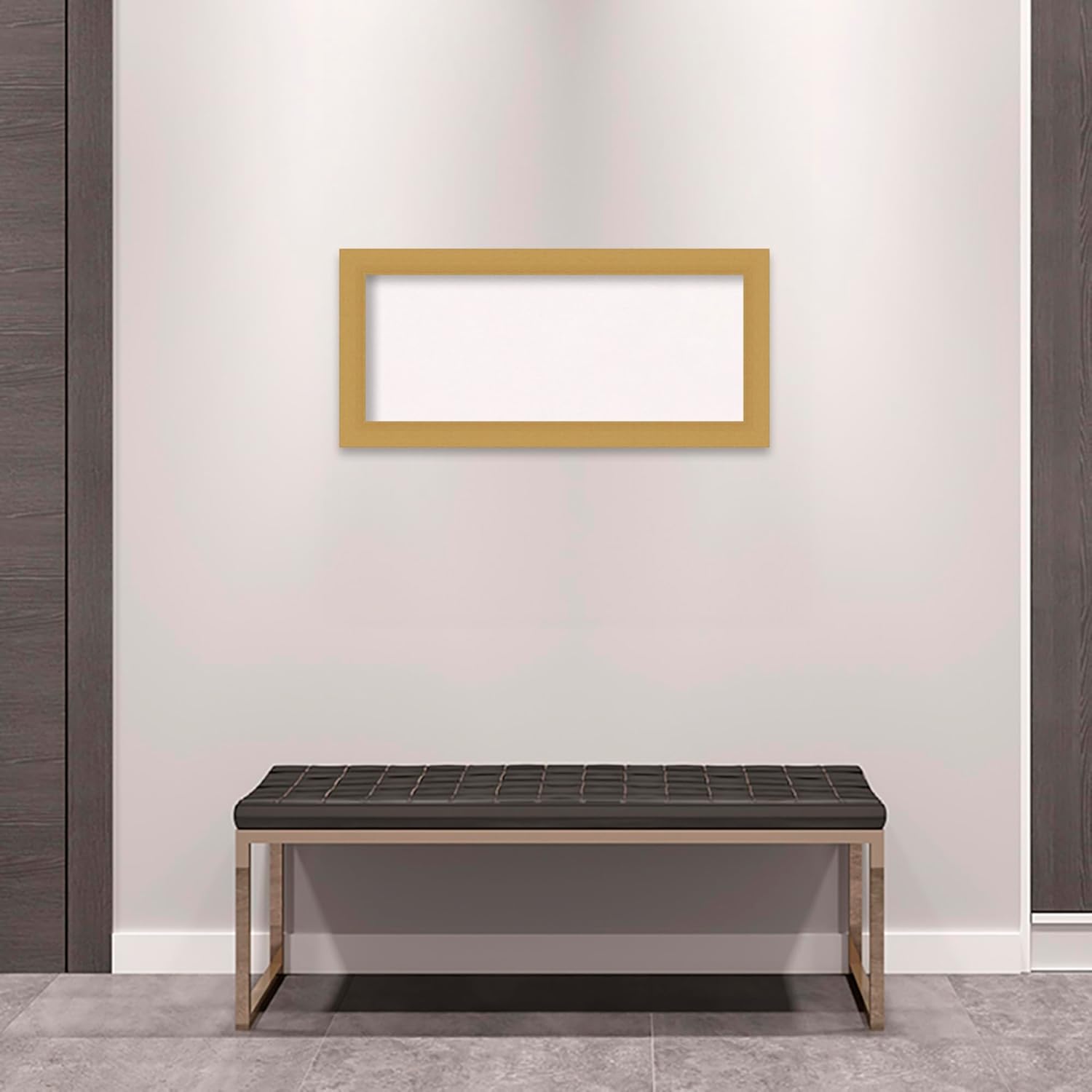 - FRAME DETAILS: The Grace Brushed Gold Frame is a brushed gold frame with a flat surface and smooth matte finish. The frame is 2 in. wide and stands 0.75 in. off the wall.