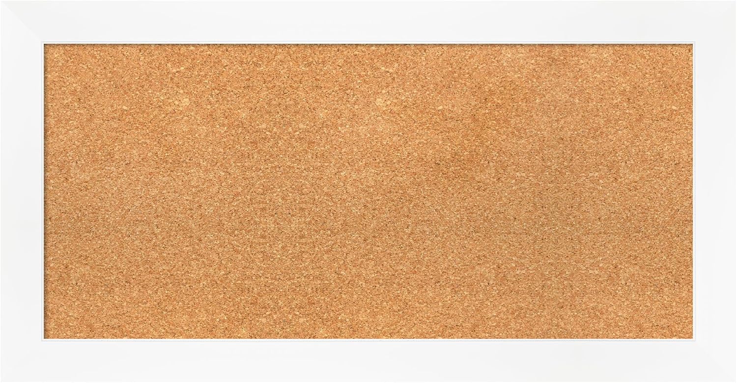 Amanti Art Natural Cork Board for Wall, 17x33 Vision Board with White Frame, Medium Corkboard Office Decor for Home Organization, Modern Corkboard Pinboard to Display Items for Home Organization in