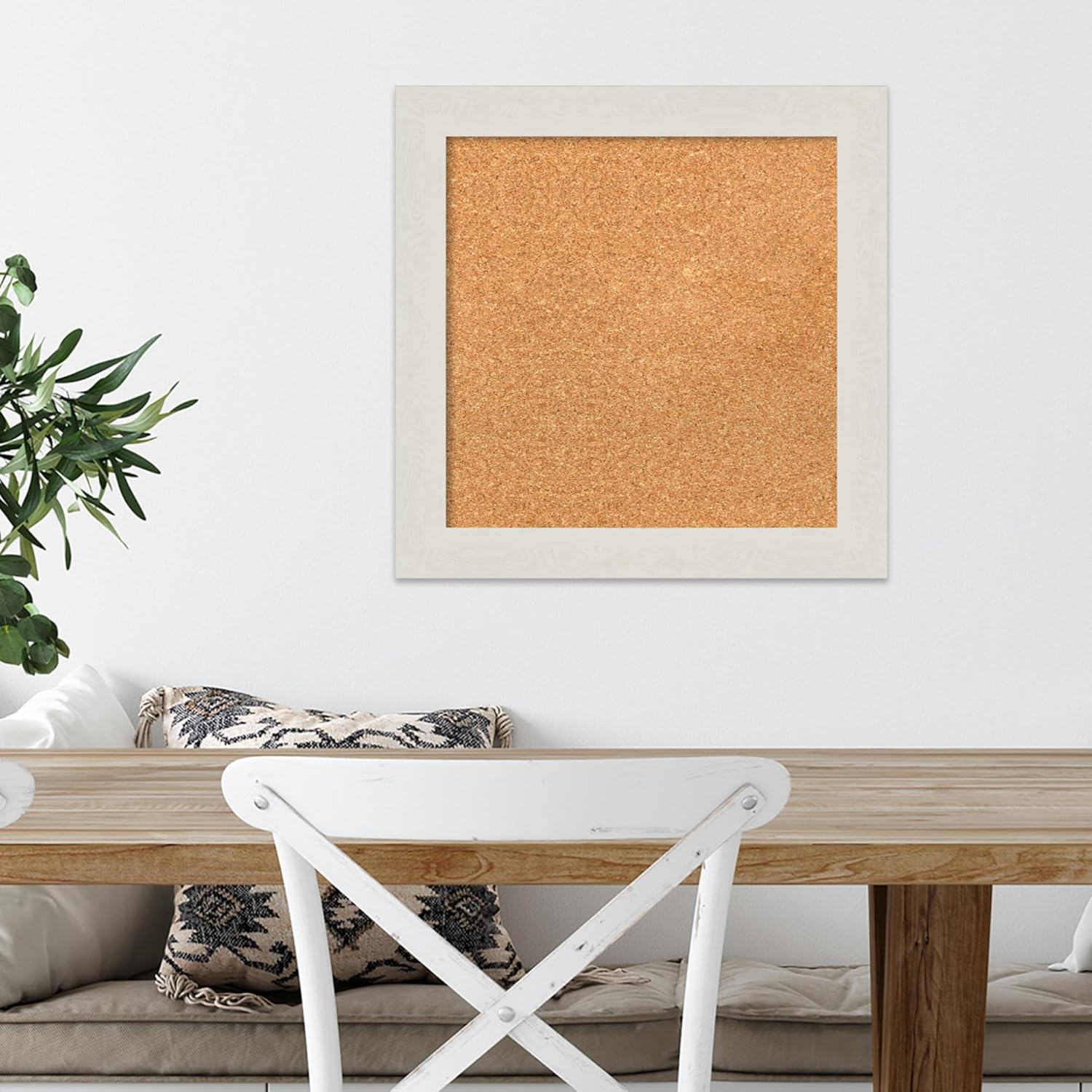Amanti Art Natural Cork Board for Wall, 19x19 Vision Board with White Frame, Small Corkboard Office Decor for Home Organization, Country Rustic Corkboard Pinboard to Display Items for Home