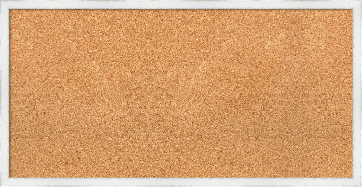 Amanti Art Natural Cork Board for Wall, 17x33 Vision Board with White Frame, Medium Corkboard Office Decor for Home Organization, Country Rustic Corkboard Pinboard to Display Items for Home