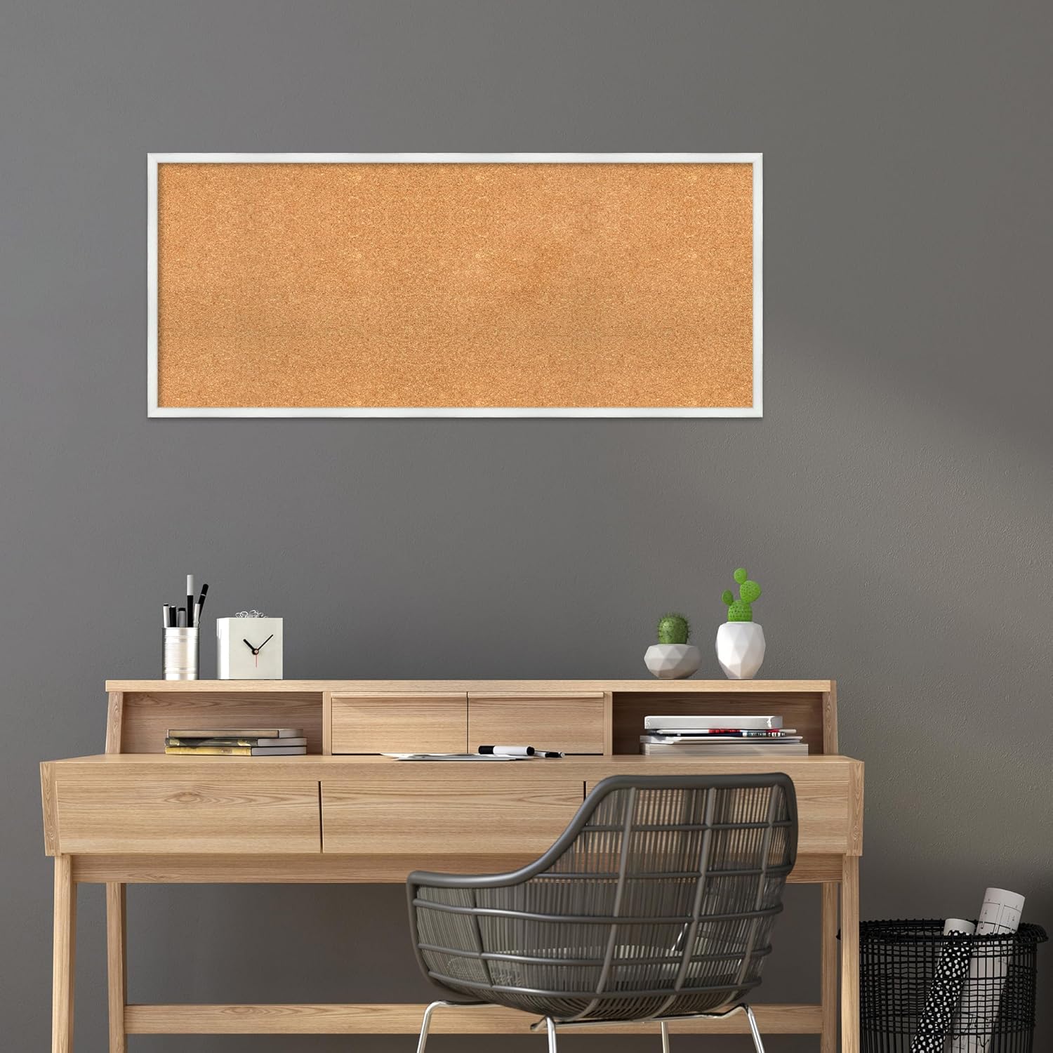 Amanti Art Natural Cork Board for Wall, 21x49 Vision Board with White Frame, Oversize Corkboard Office Decor for Home Organization, Country Rustic Corkboard Pinboard to Display Items for Home