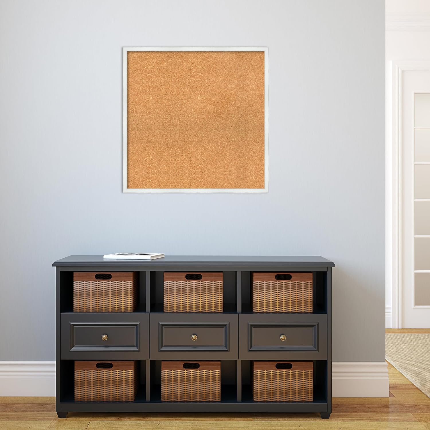 Amanti Art Natural Cork Board for Wall, 27x27 Vision Board with White Frame, Large Corkboard Office Decor for Home Organization, Country Rustic Corkboard Pinboard to Display Items for Home