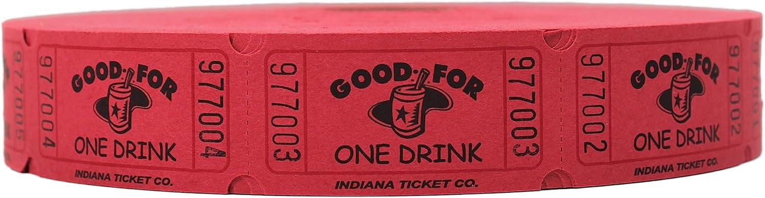INDIANA TICKET CO. 2000 Raffle Tickets, Drink, Red, Single Roll, Ticket for Events, Entry, Class Reward, Fundraiser & Prizes