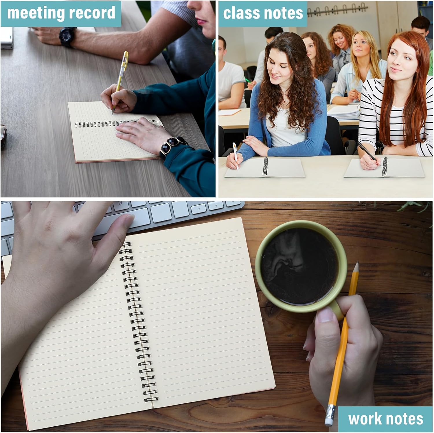 - Side Spiral Binding: each of office spiral notebooks has side spiral binding design, and you can turn the paper over 180 degrees without embarrassing situations such as paper falling or wrinkling; And you can tear off the paper at will, keeping the paper intact and leaving no trace, providing more comfortable writing conditions for left and right hand users