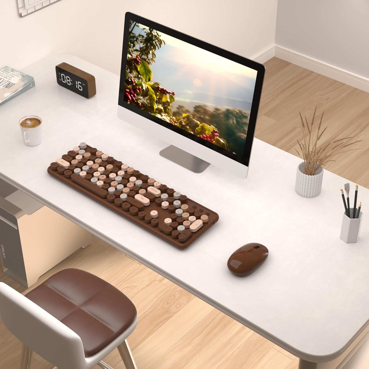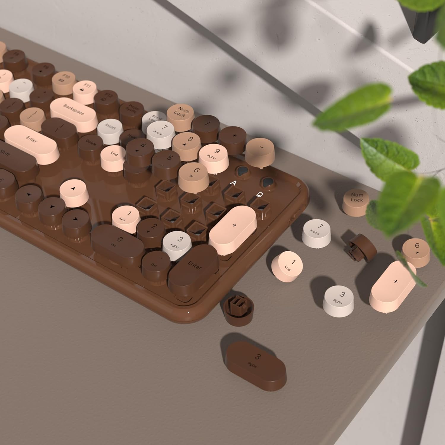 - Retro Round Keyboard:The wireless keyboard features retro typewriter-style round key-caps, 104 keys full-size with numpad, and 12 multimedia hotkeys combined with the FN key to optimize your work and study efficiency