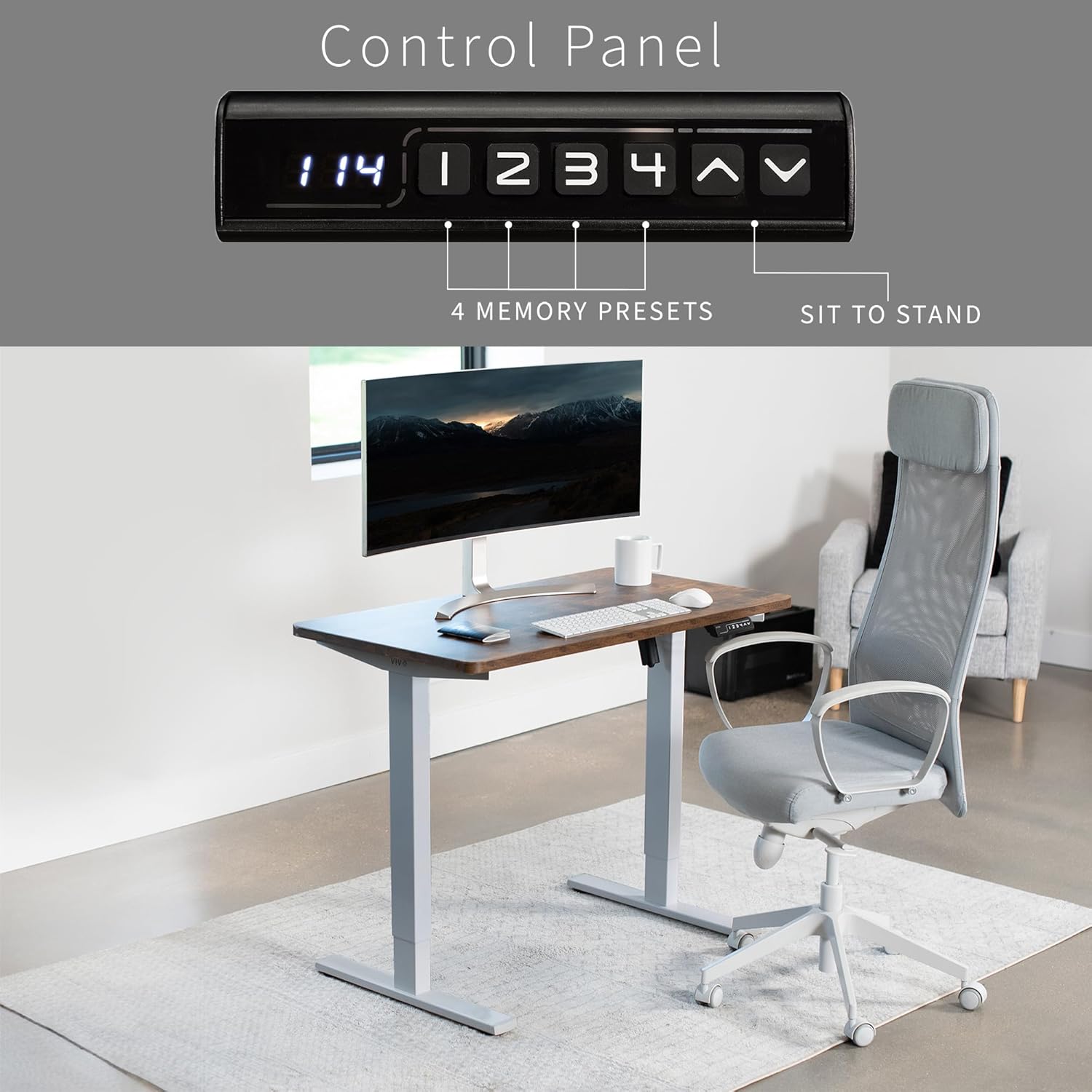 - Powerful Electric Motor: Enjoy a height range of 29.3" to 48.5" with this frame’s powerful motor and strong legs using telescopic height adjustment. The easy-to-use push-button controller features 4 memory presets to save your desired heights