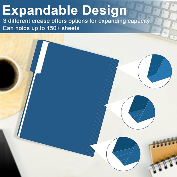 - EXPANSION CAPACITY: RAZCC folders is crafted from thicker paper, not easy to break and deformation. 3 expansion crease at bottom designed for desktop and drawer filing, allows you to store more documents as needed