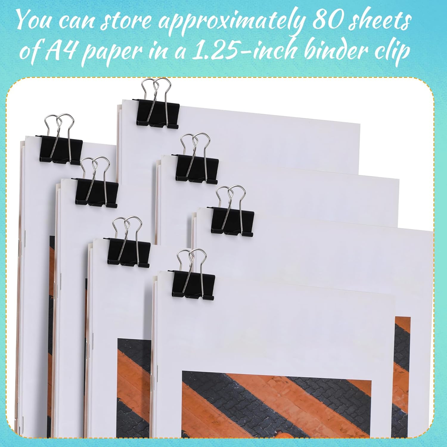 Jetec 500 Pieces 1. 25 Inch Black Binder Clips Bulk Large Paper Clamps Metal Paper Clips for Teachers Students Classroom Business Office and School Office Supplies