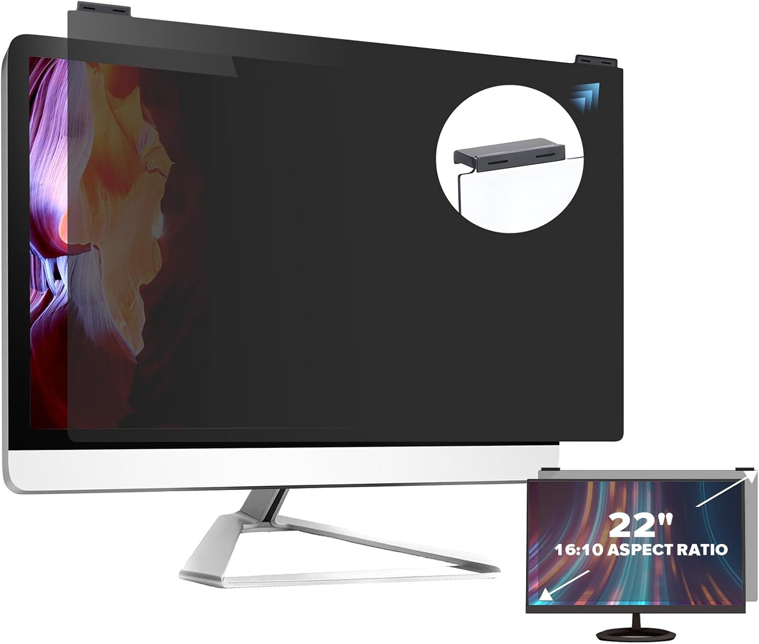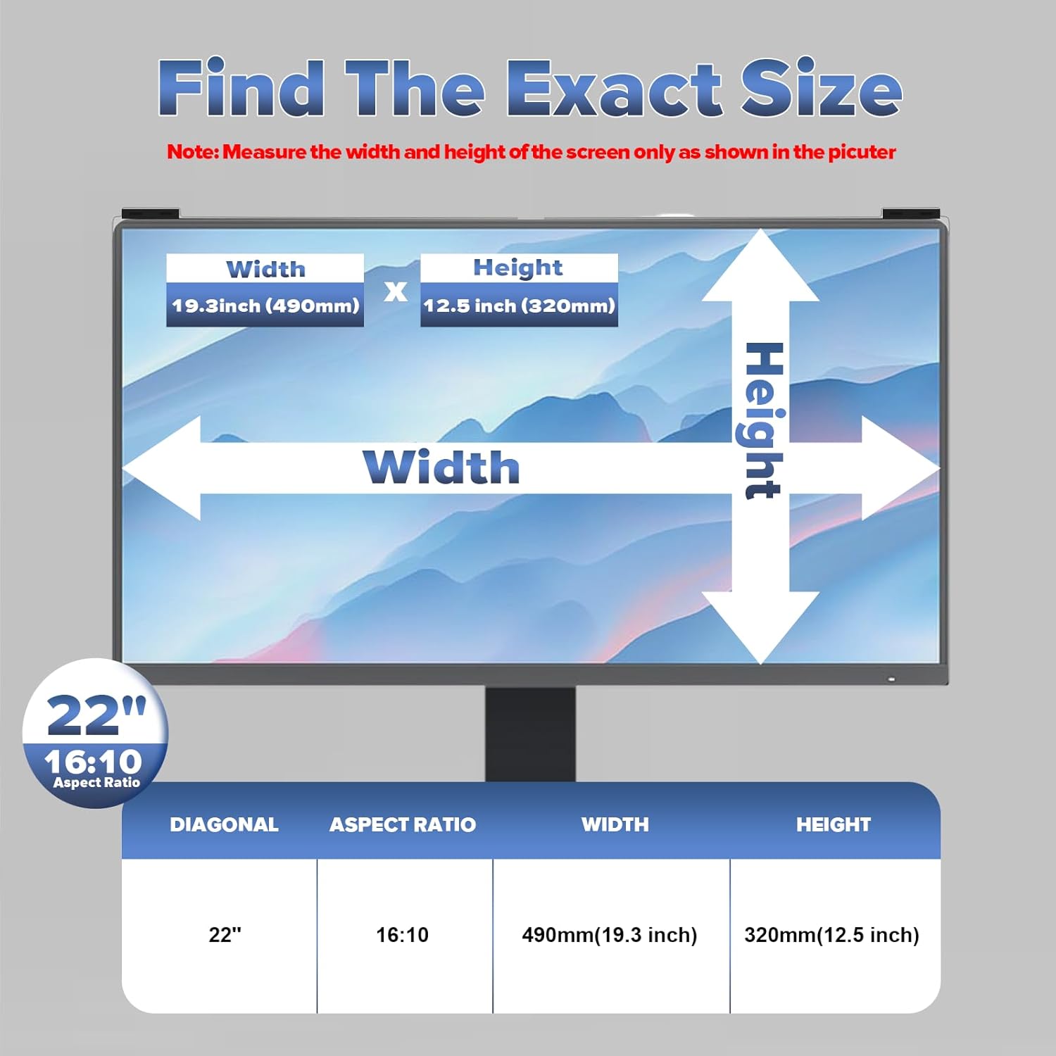 - Compatible with 22 inch Computer Monitor : The computer privacy screen filter perfectly fits for 22 inch widescreen monitor with an aspect ratio of 16:10. To determine the right size of your screen, measure the height and width of your screen without the boarder. The 22 inch computer monitor privacy screen compatible with the width of 19.3"(490mm)and height of 12.5"(317mm). If you have any problems with the size, please contact us directly