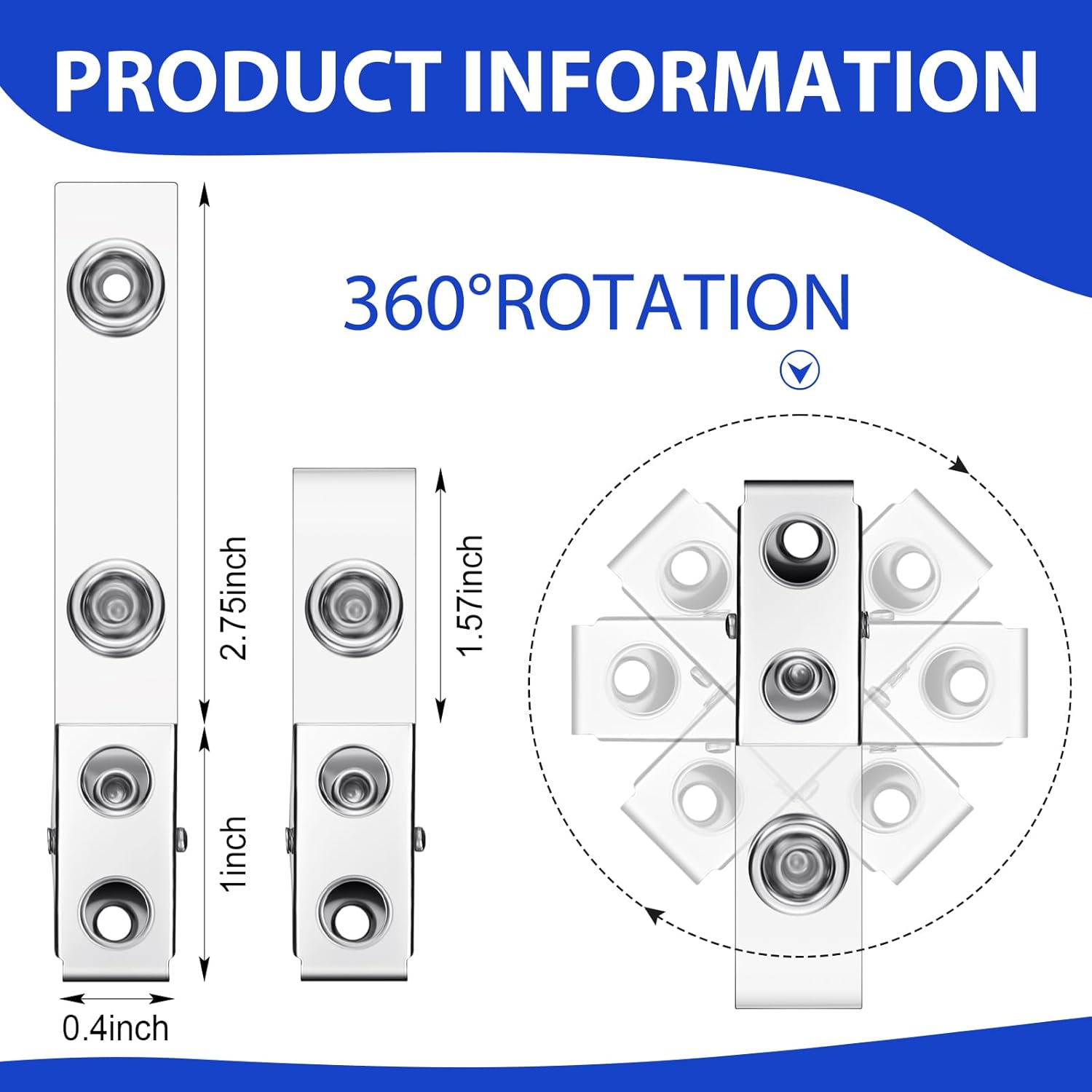 - Ideal Size: the metal clip measures approx. 1" x 3/8", and the clear strap is about 2 3/4" x 1/2", which can match well with most pockets and lapels; The proper size of ID clips for badges allows you to store and carry them around in your pockets and bags without taking up too much space when not in use