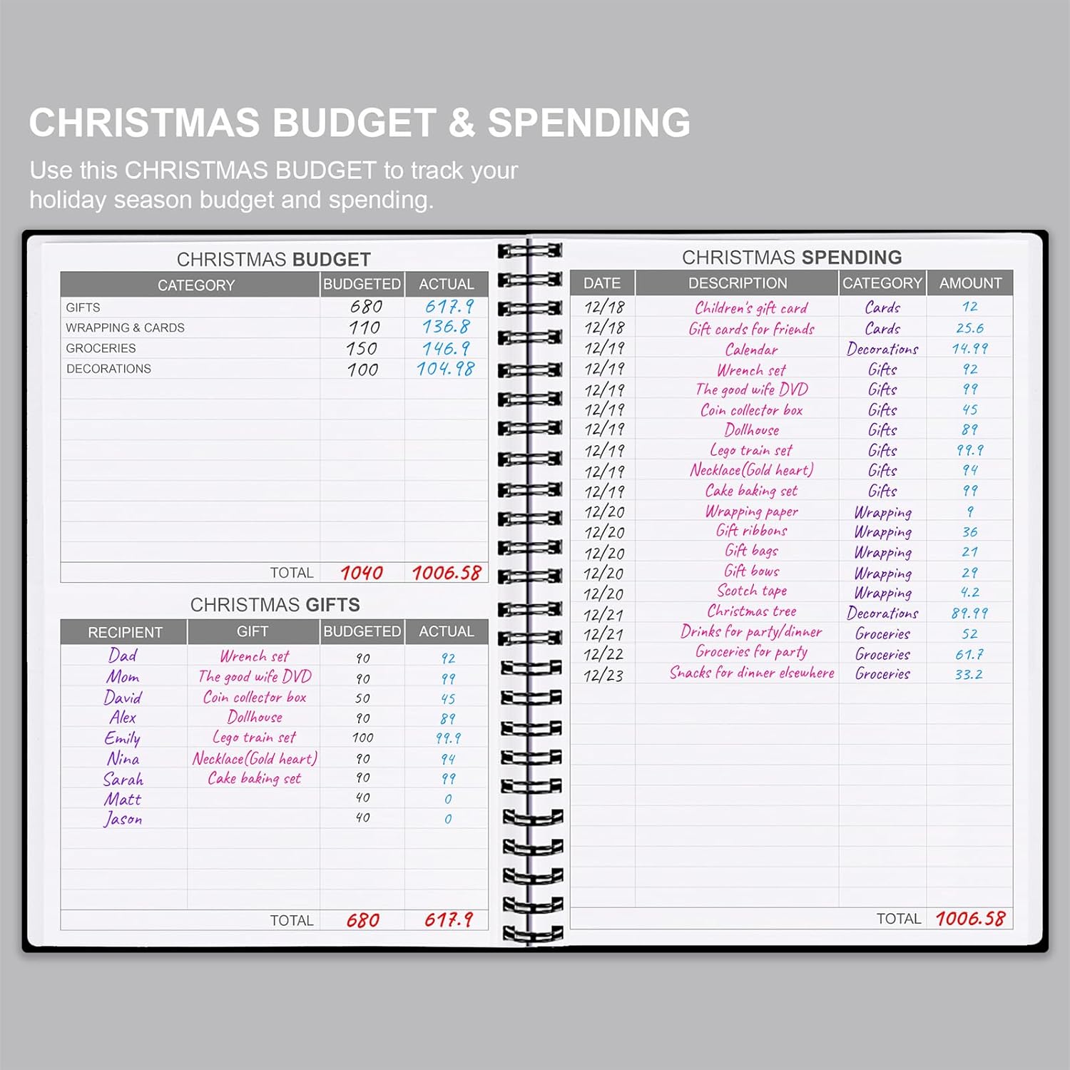 - MANAGE YOUR MONEY EFFECTIVELY - This budget planner contains financial goals, financial strategy, savings, debts, daily expense, monthly budget, monthly budget review, Christmas budget, summary of the year sections, which is a good finance books, it will help you to take control of your money effectively