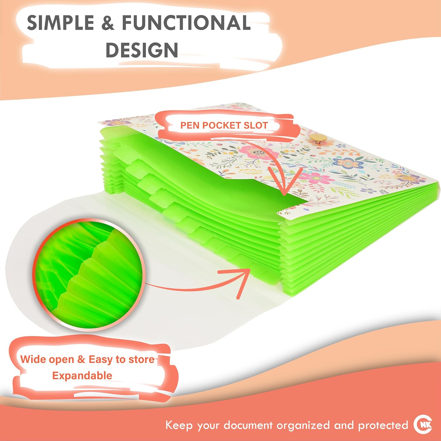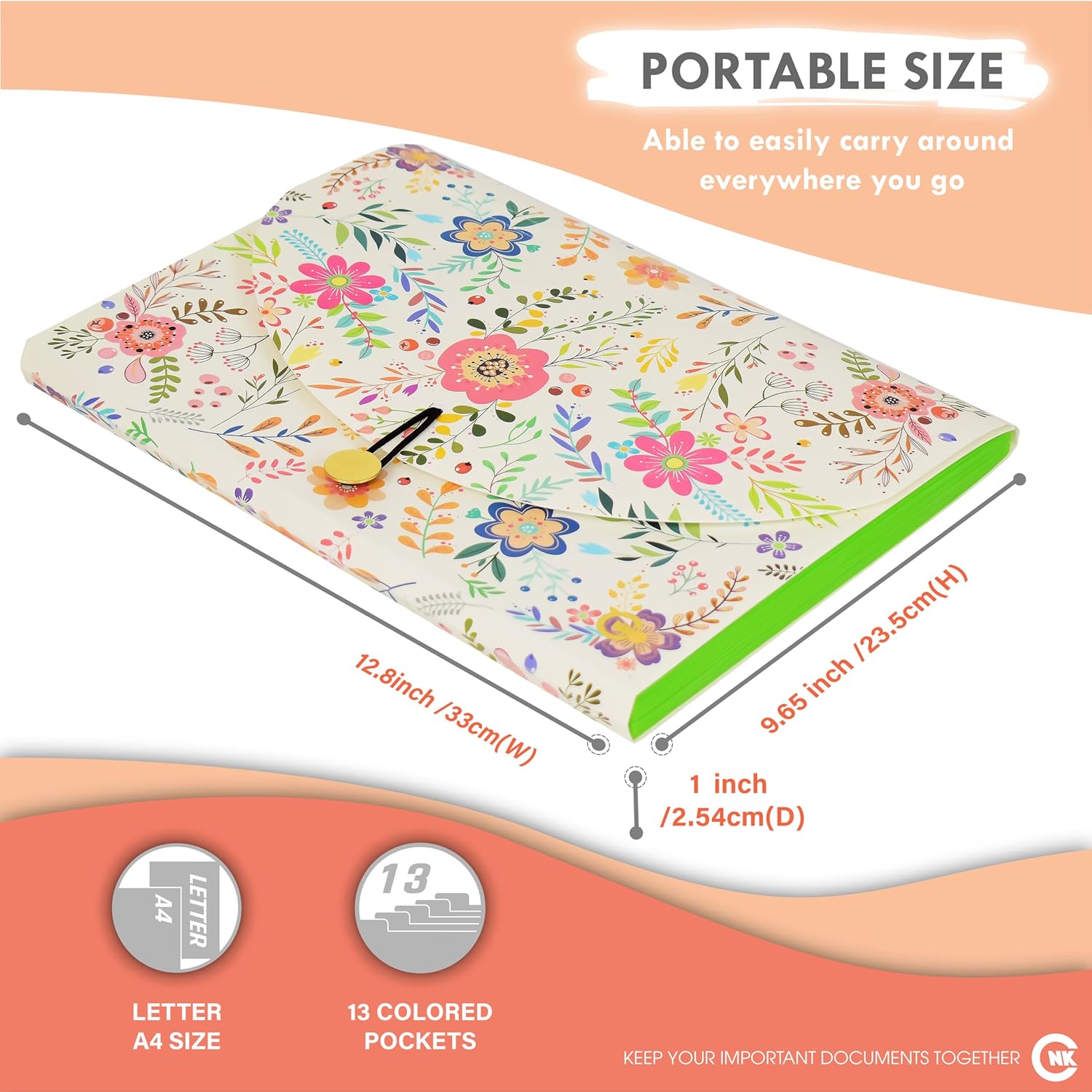 CNK File Folders Organizer with 13 Pockets Accordion Expanding Folder Documents Receipt Document Paper Pocket Filing Accordian Important expandable holder files alphabetical Labels Letter