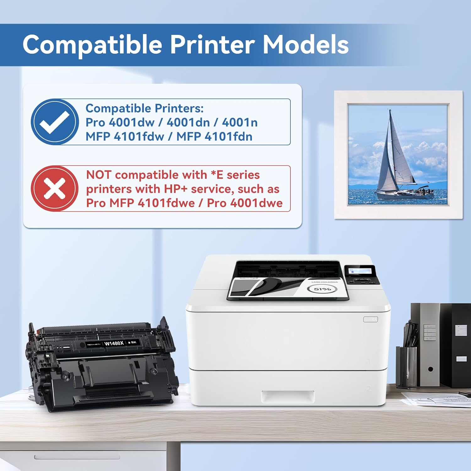 - Compatible with HP Printers: Pro 4001dw 4001dn 4001n, Pro MFP 4101fdw 4101fdn Printer compatible with HP 148X 148A Black High Yield Toner Cartridge