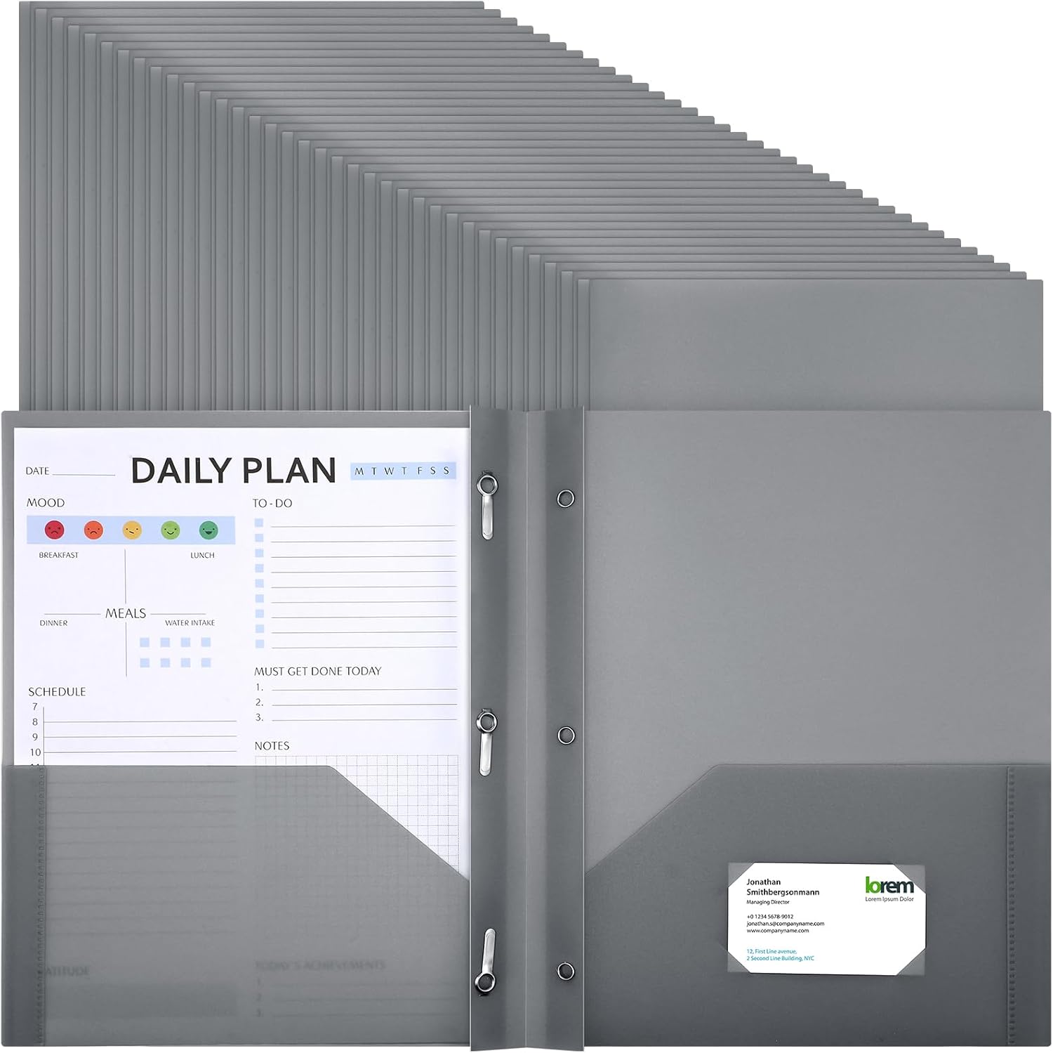 - Stay Organized with Ease: the folders offer 2 pockets and 3 prong fasteners for convenient organization of documents; They are suitable for keeping important papers and files organized at office or home; The business card slot also helps to keep important contacts handy