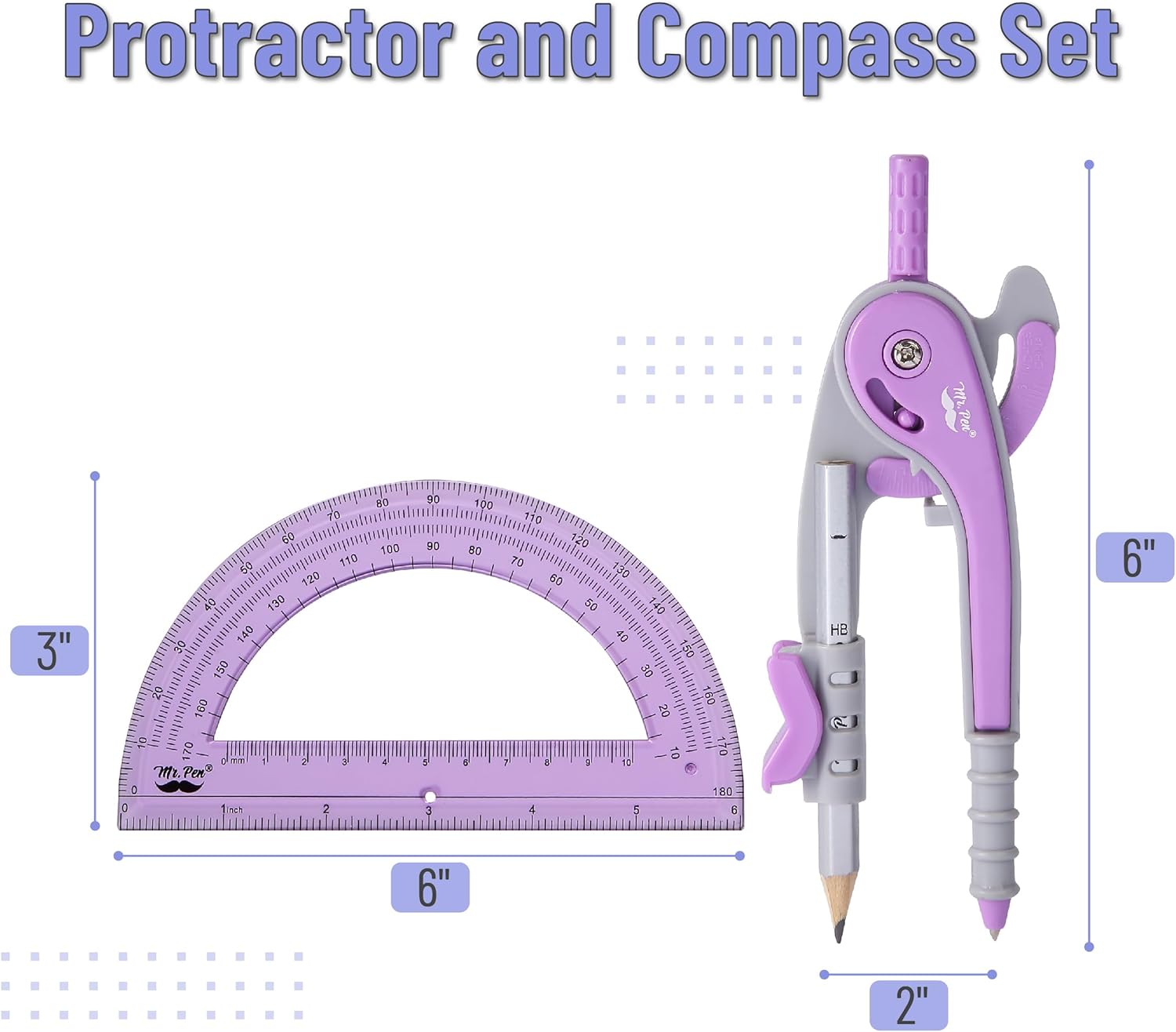 Mr. Pen- Compass and Protractor Set, Purple, Compass Geometry Tool, Protractor and Compass Set, Compass Drawing Tool, Drawing Compass, Protractor Set, Geometry Compass, Back to School Supplies