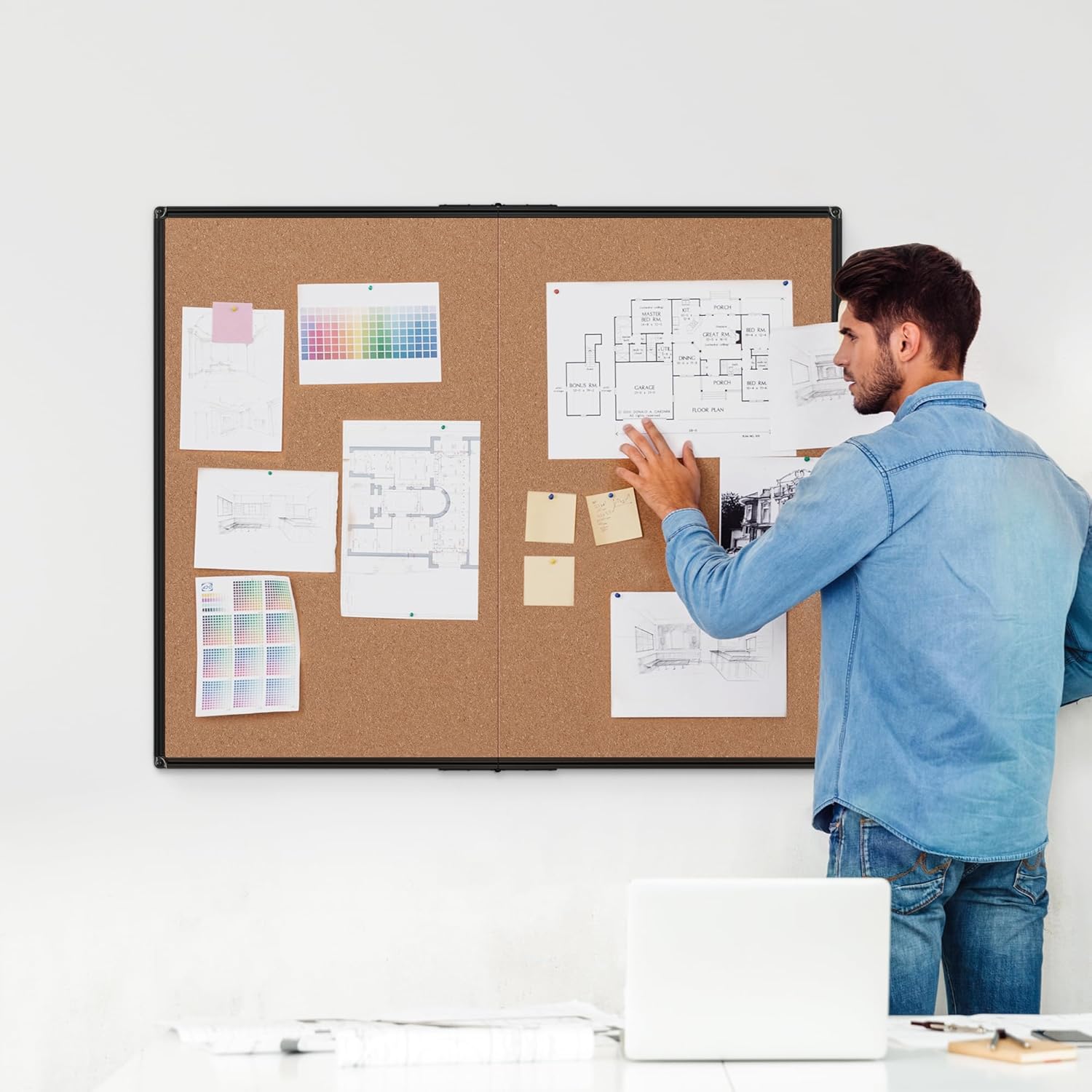 Board2by Extra Large Cork Bulletin Board 48" X 48", Foldable Notice Pin Board for Wall, Black Aluminum Framed 4'x4' Corkboard, Wall Mounted Noticeboard with 36 Push Pins for School, Home & Office