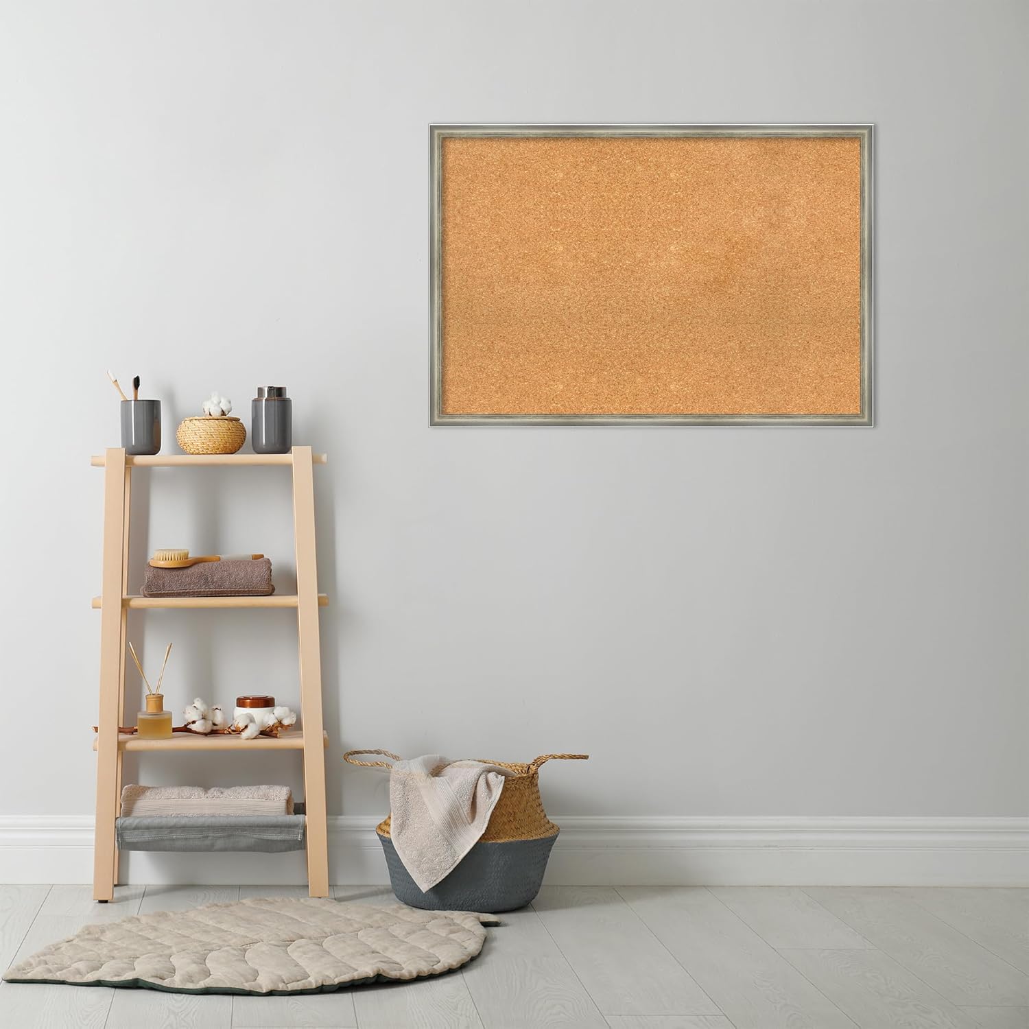 Amanti Art Natural Cork Board for Wall, 26x38 Vision Board with Silver Wood Frame, Large Corkboard Office Decor for Home Organization, Casual Corkboard Pinboard to display items for home organization