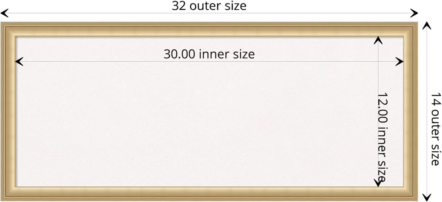 Amanti Art White Cork Board for Wall, 14x32 Vision Board with Gold Frame, Medium Corkboard Office Decor for Home Organization, Casual Corkboard Pinboard to display items for home organization