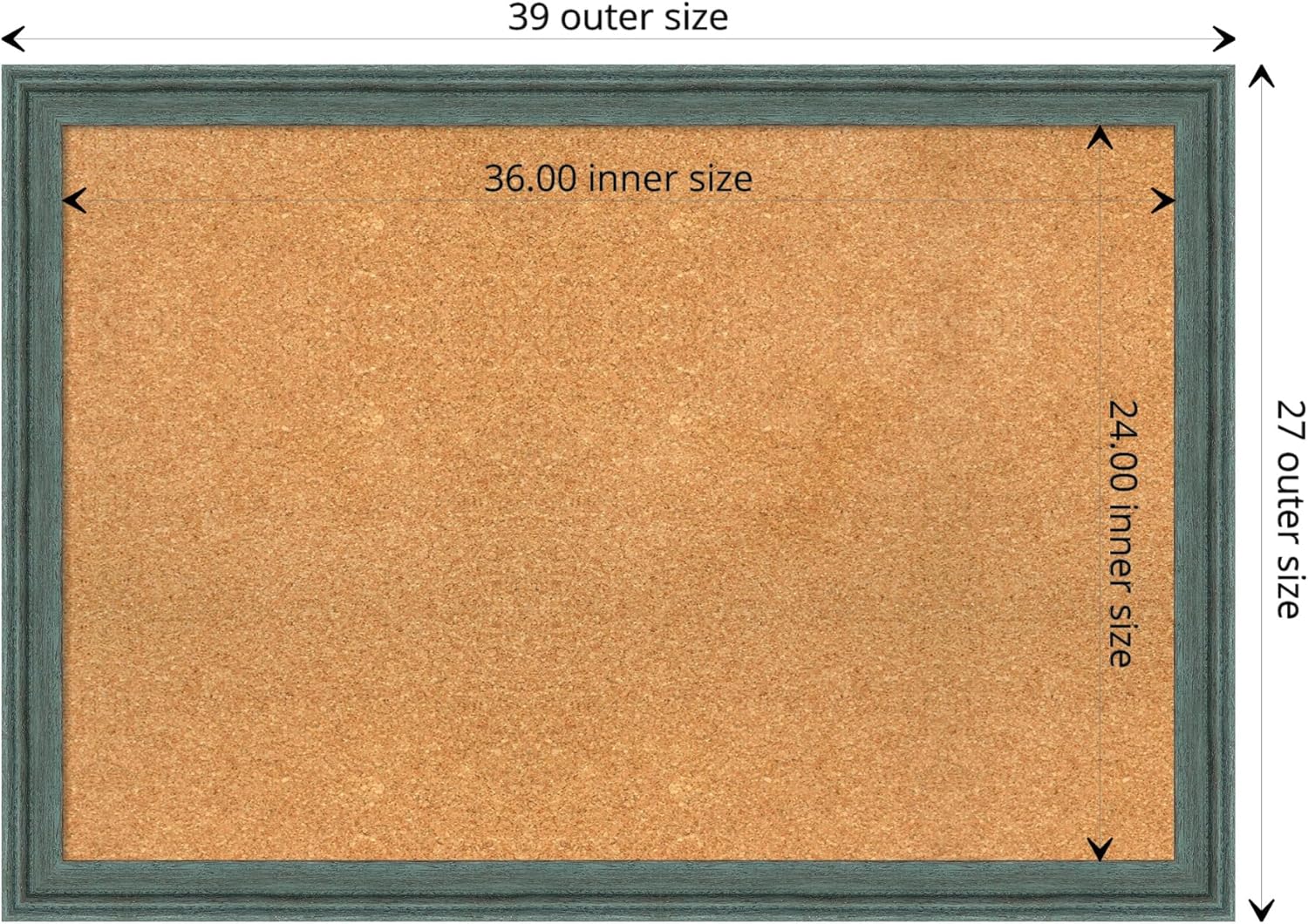 Amanti Art Natural Cork Board for Wall, 27x39 Vision Board with Blue Wood Frame, Large Corkboard Office Decor for Home Organization, Rustic Farmhouse Corkboard Pinboard to display items for home