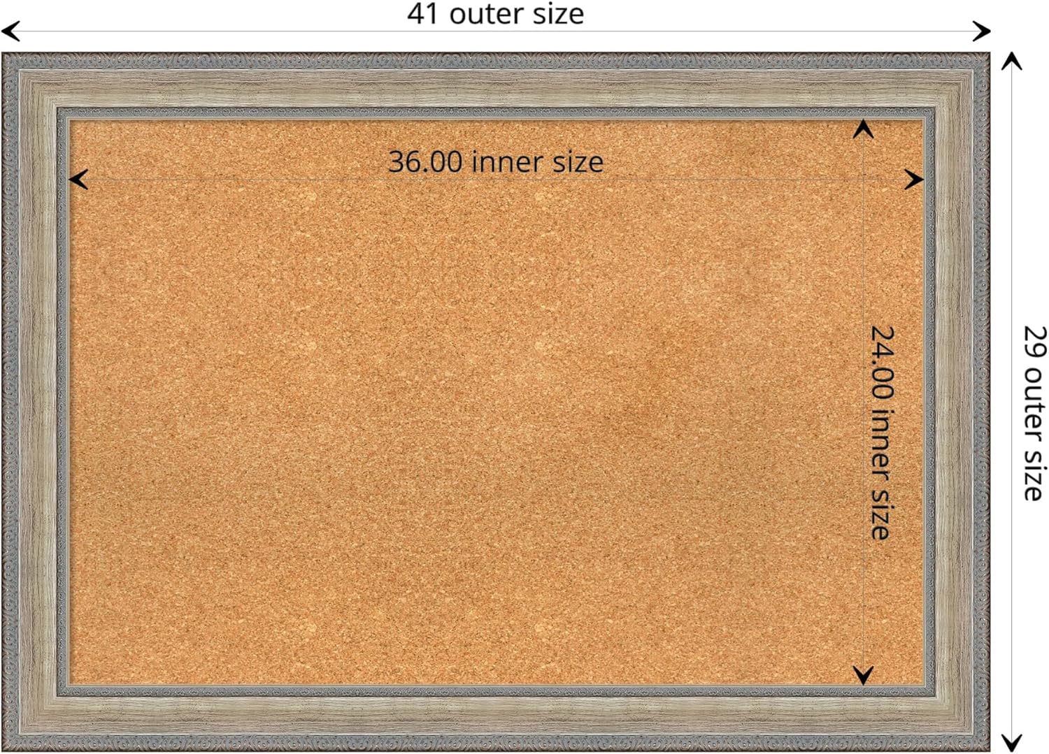 - DIMENSIONS: The overall size of this framed corkboard measures 41 in. x 29 in., including the frame. Its functional cork board area measures 36 in. x 24 in.
