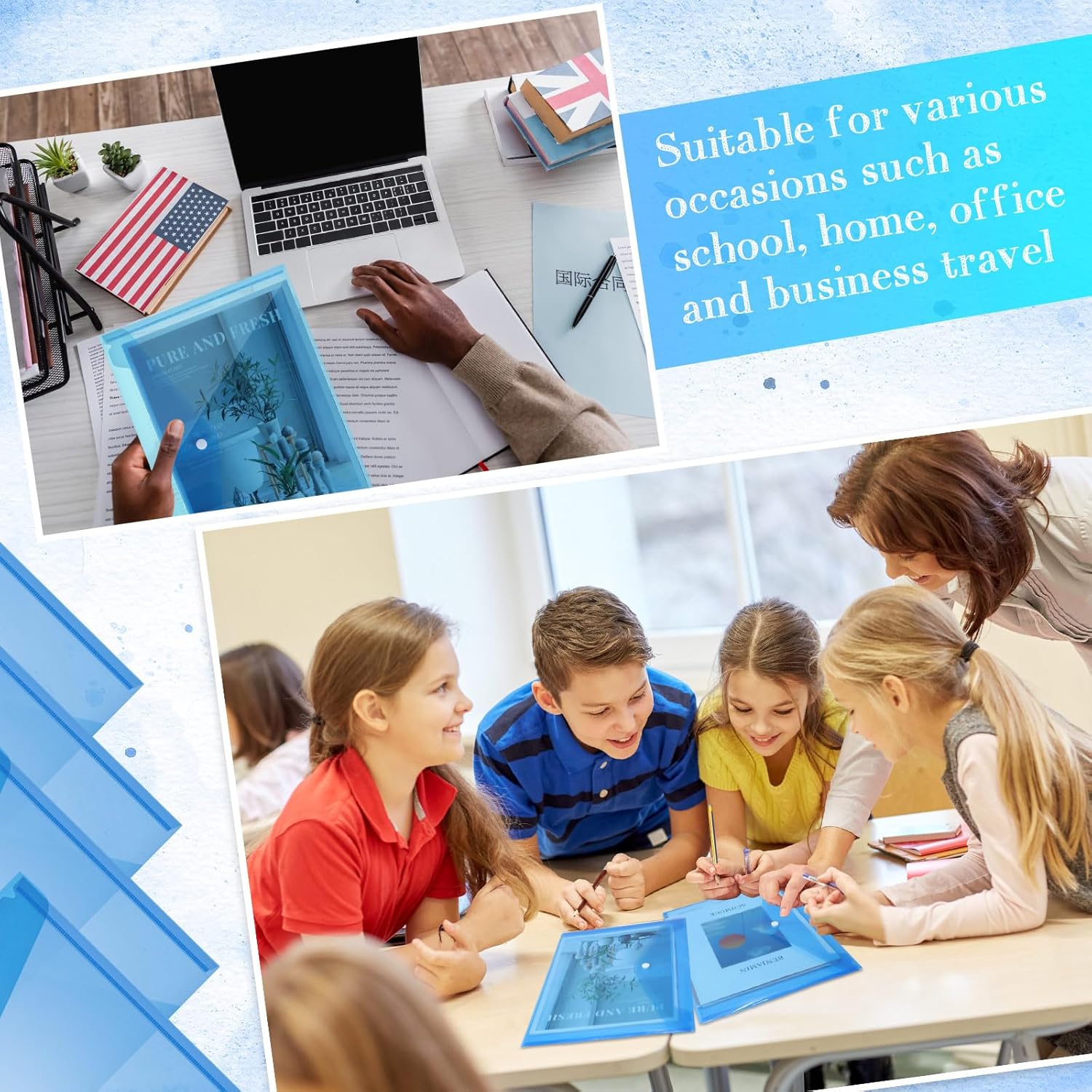 Zhehao 100 Pcs Clear Envelopes with Snap Button Closure A4 Letter Size Plastic Envelope Folder Poly Document File Folders for Home Office(Blue,Simple Style)