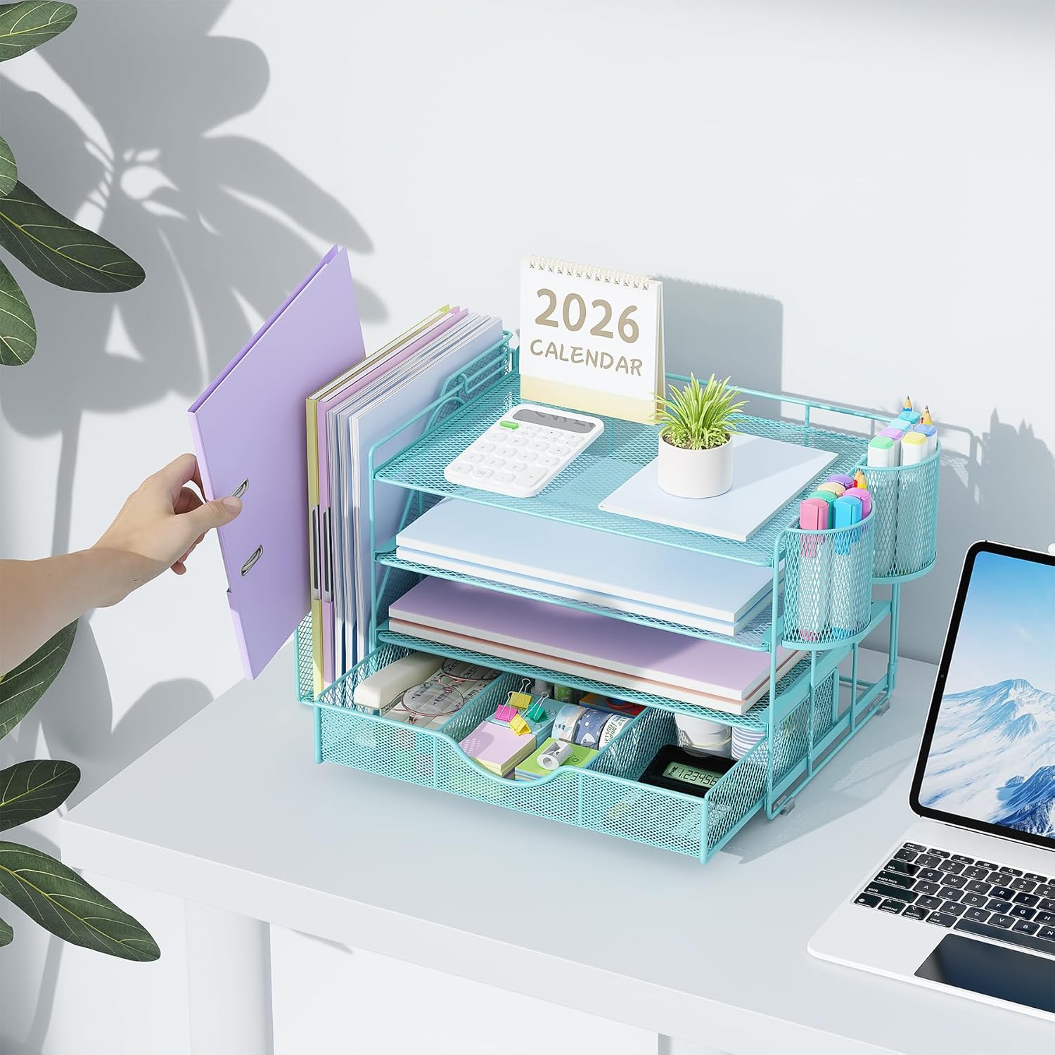 - 📂【Improve Work Efficiency】:The file organizer includes 4 trays, a magazine rack, 2 pen holders and a sliding drawer, helps you quickly identify the contents of each compartment, doubles your work speed, keeps you busy and more creative throughout the day.