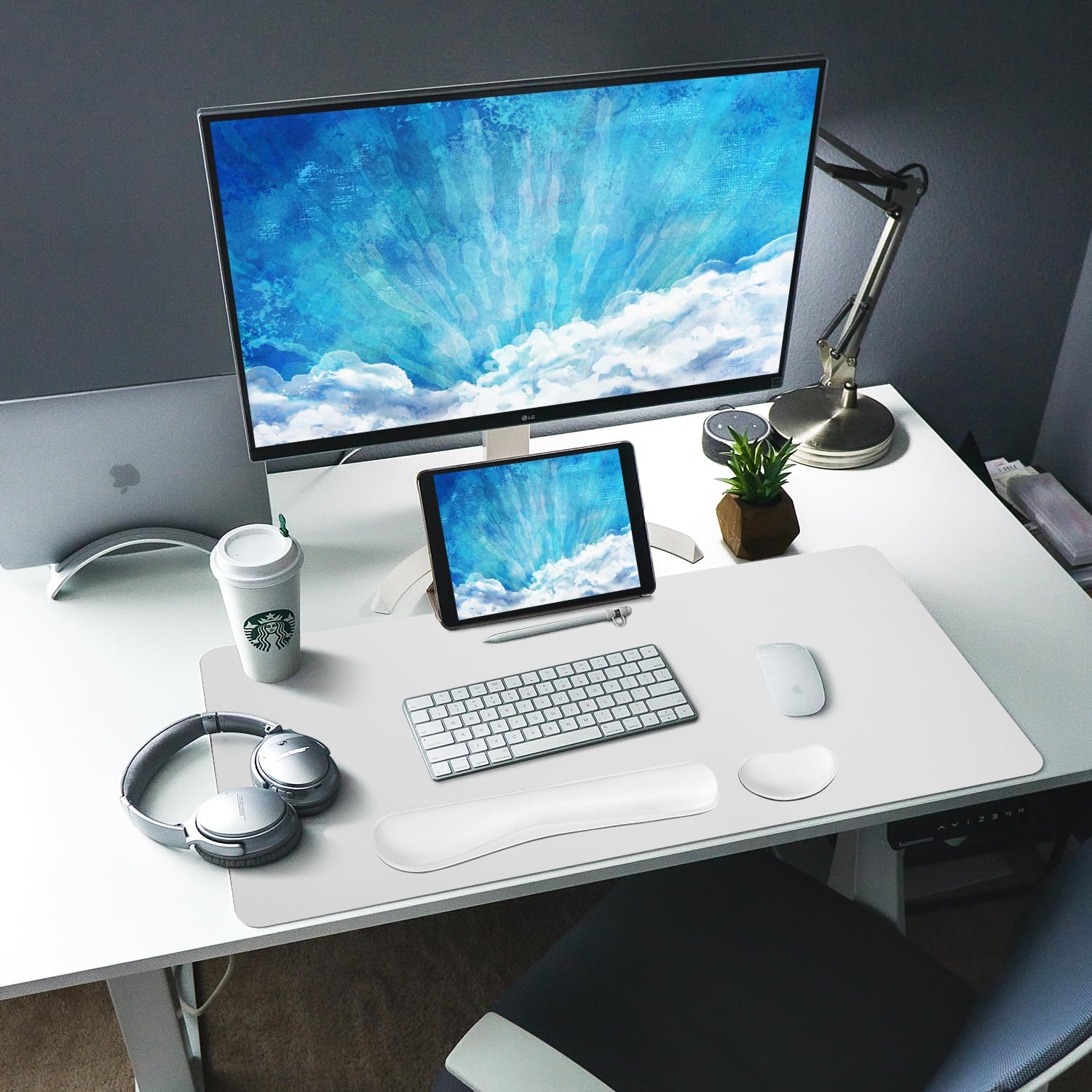 Bloss Leather Desk Pad and Keyboard Wrist Rest, Large Mouse Pad + Keyboard Pad+Mouse Wrist Support, Non-Slip Desk Mat Protector for Office, Home(31.5×15.7 Inches,White)