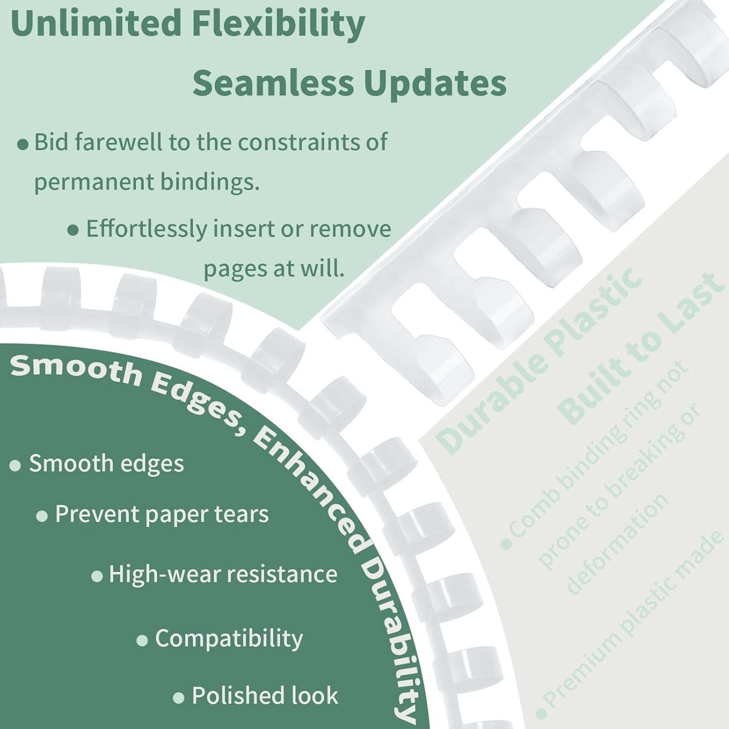 Plastic Binding Combs, Mixed Size, 21rings, 1/4in, 5/16in, 3/8in, 1/2in, Binding Capacity 20-90 Sheets, Max. Binding A4 Size Paper, White, Pack of 100
