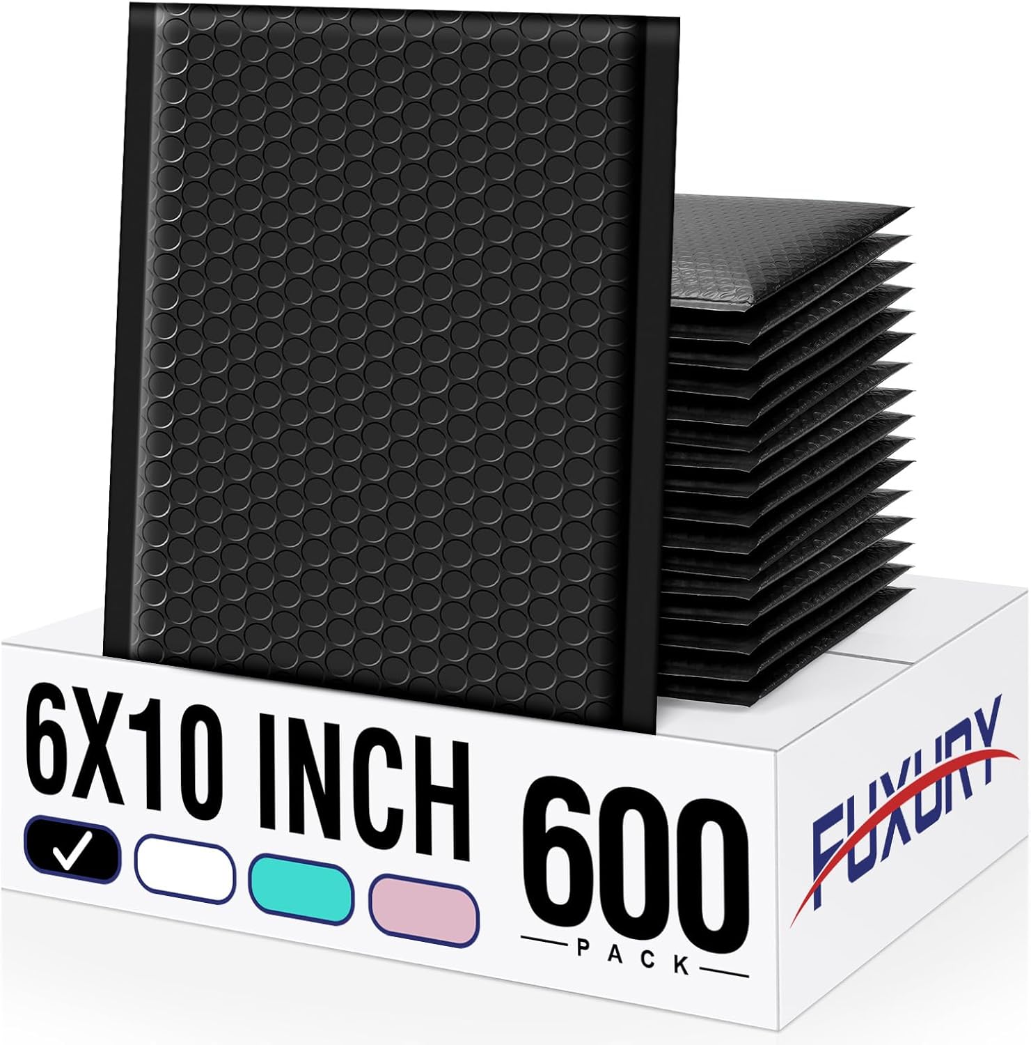 Fuxury Bubble Mailers 6x10“ 600 Pack Black Padded Envelopes Usable Size 6x9" Thick Mailing Envelopes Bubble Padded, Shipping Bags for Mailing,Packaging, Small Business, Boutique, Bulk #0