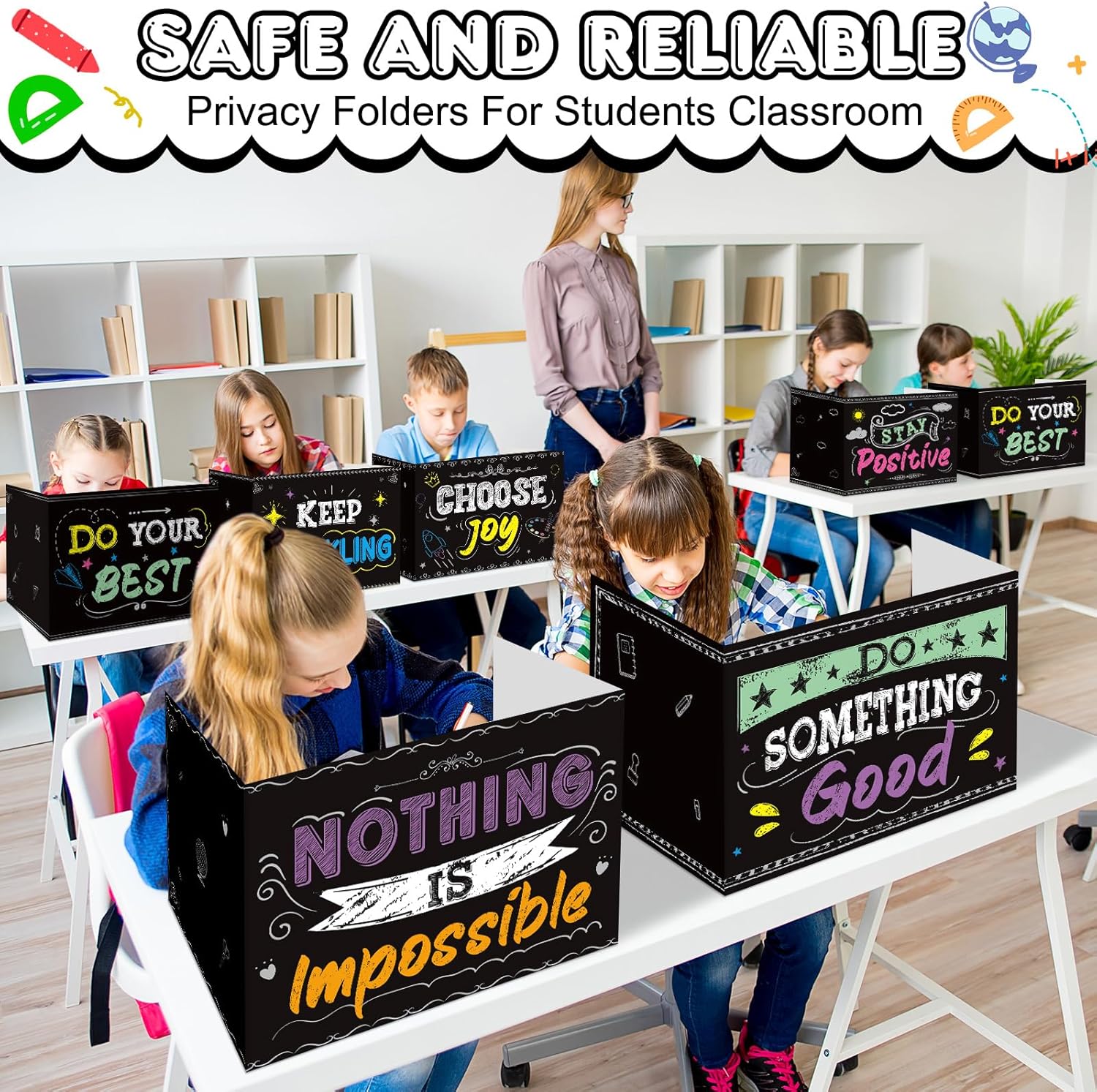 Honoson 24 Pcs Bulk Inspirational Privacy Folders for Students Cardboard Test Privacy Boards Motivational Words Desk Dividers Shield for Classroom School Study Supplies, 6 Styles(Blackboard)
