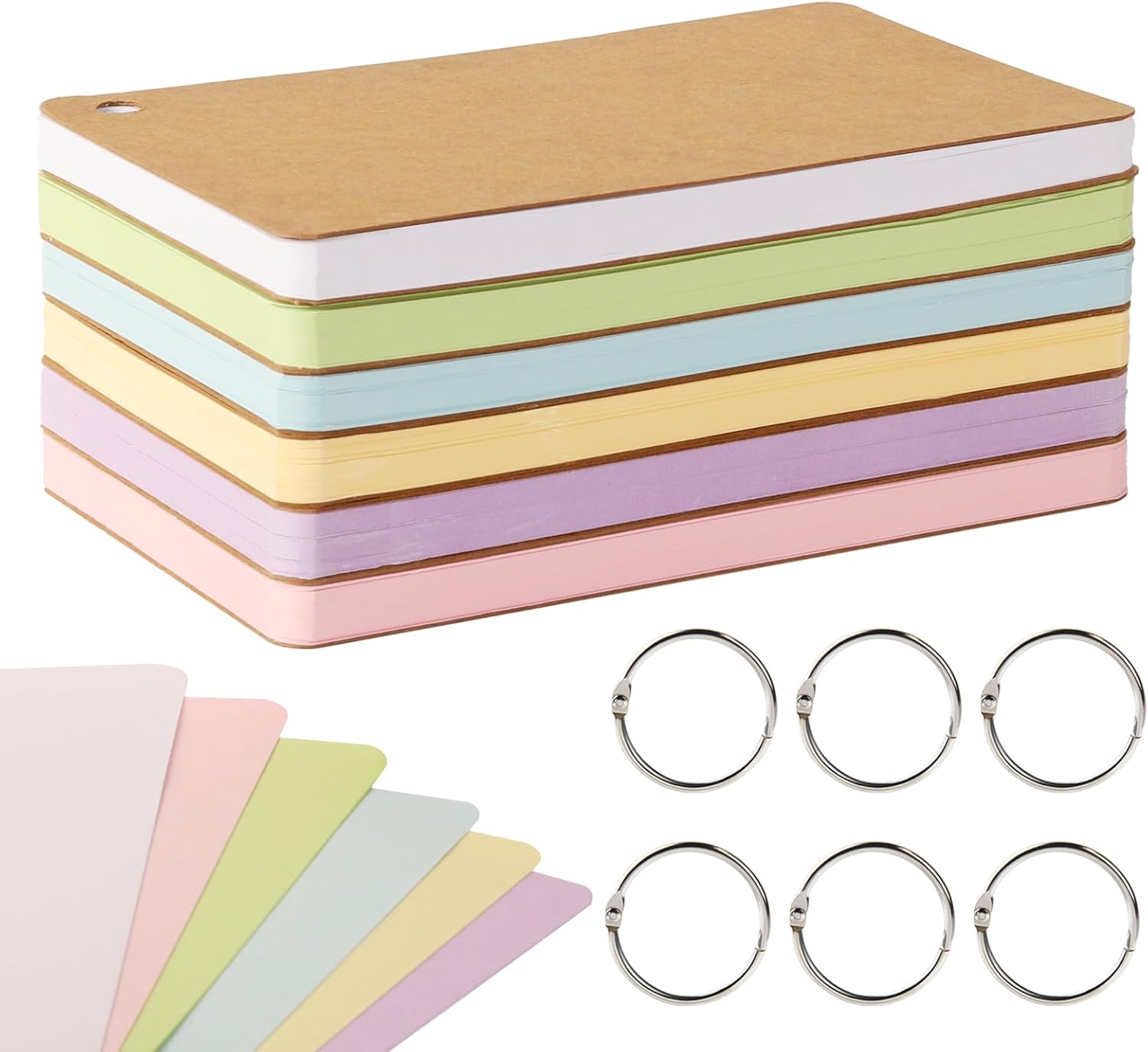 - Package contains: 360 PCS blank index cards with 6 rings, including 6 different colors: green, purple, pink, yellow, blue and white. Each color 60 sheets, total 360 sheets.