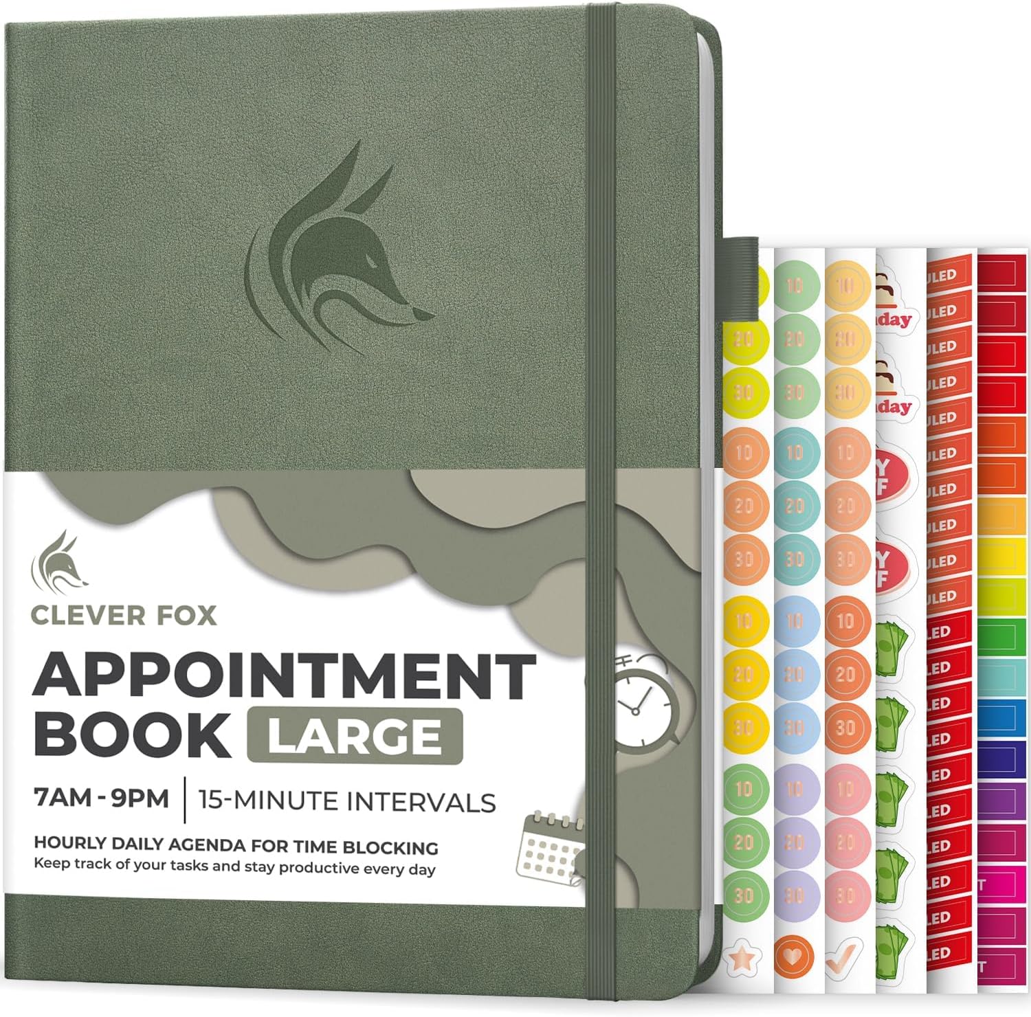 Clever Fox Appointment Book – Hourly Schedule Planner with 15-Minute Increments – Time Box Planner for Daily Work & To-Dos – Weekly & Monthly Spreads, Undated, Hardcover, 8.3x11″ (Cypress)
