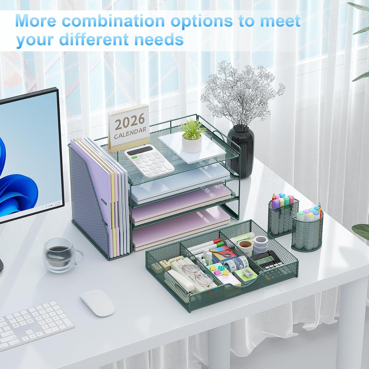 gianotter 4-Tier Desk Organizer with Drawers, File Holders, Letter Trays and Pen Holders - Workspace Accessories for Office Supplies (Green)