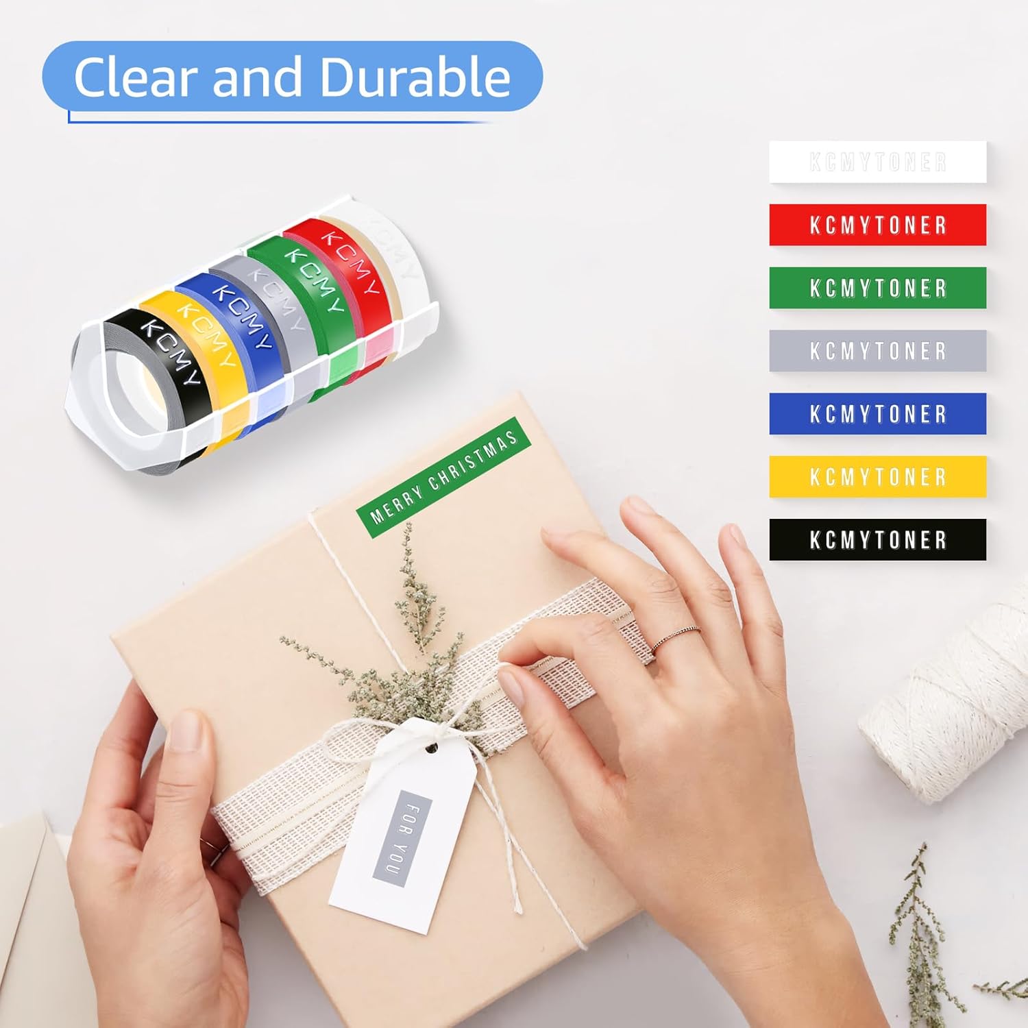 - Product information: KCMYTONER 3D plastic embossing label tapes white print on red compatible for Dymo embossing label makers. Dimension: Width: 1/2" (12mm), Length: 9.8' (3m).