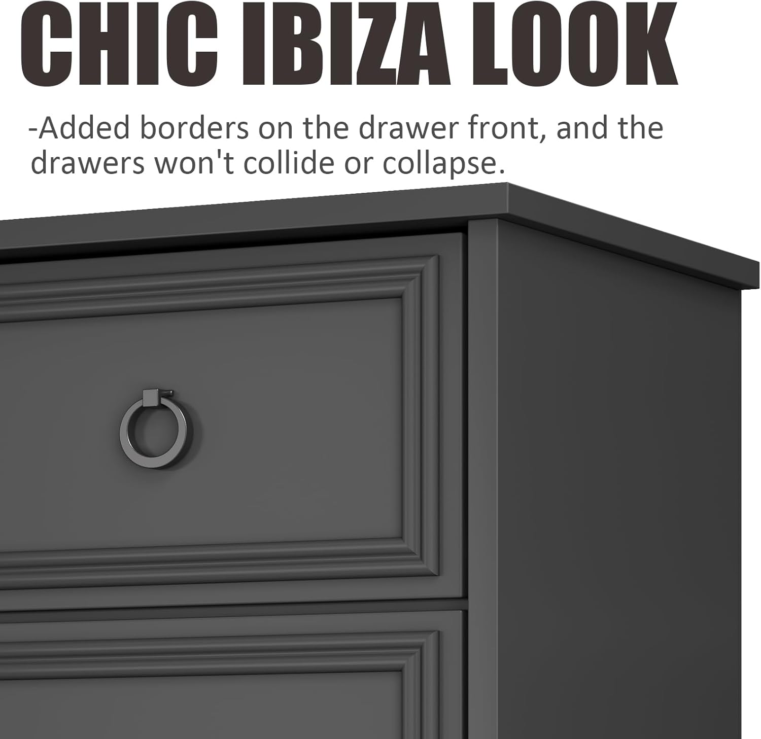 - ăChic lbiza styleăThis chest cabinet is elegant in workmanship, added borders on the drawer front, combined with the classic wood grain, adds a modern feel with a suitably vintage flavor.