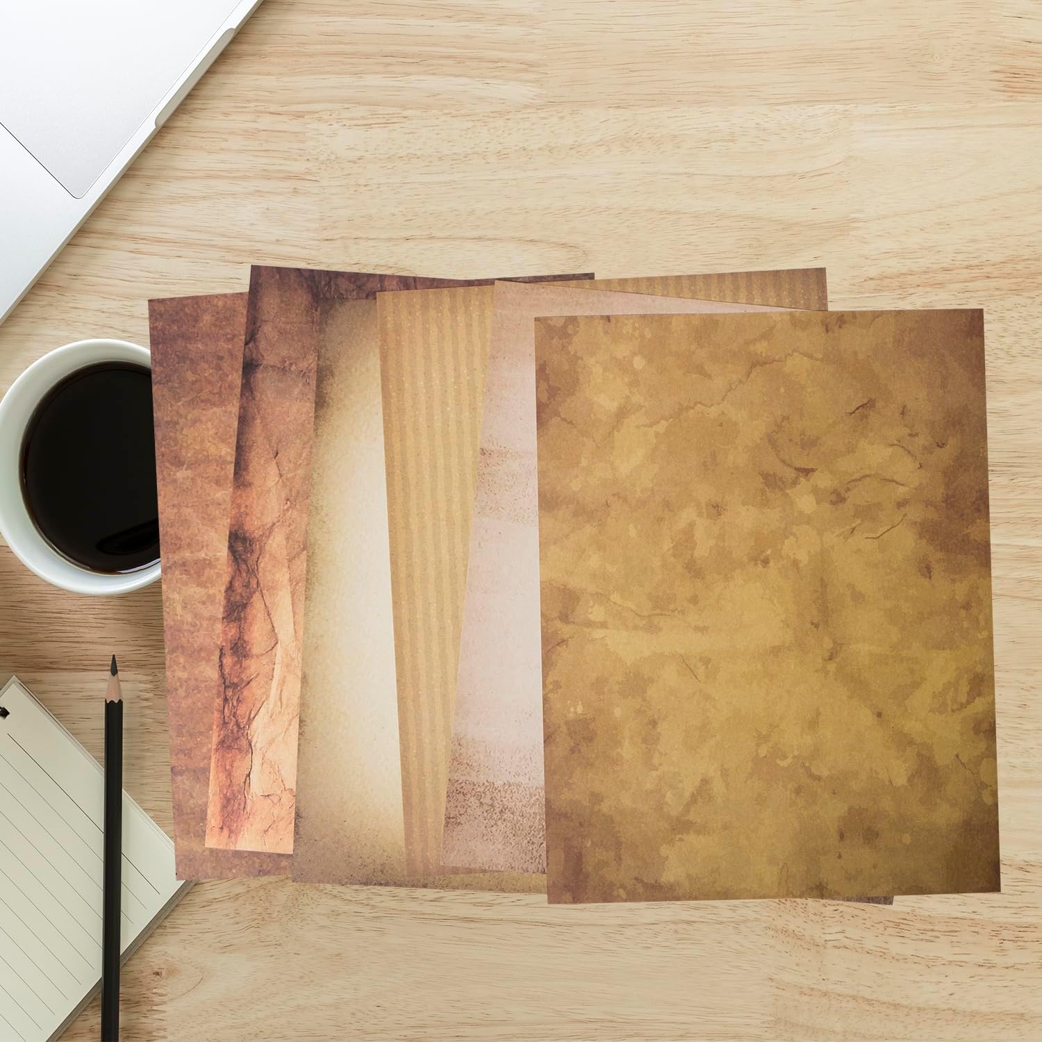 48 Aged Paper -Vintage Letter Papers With Classic Aged Paper Designs- Six Old Looking Styles Perfect for Vintage Letters - Vintage Printing paper, Vintage Writing Paper, 8.5 x 11 inches (Pack of 48)