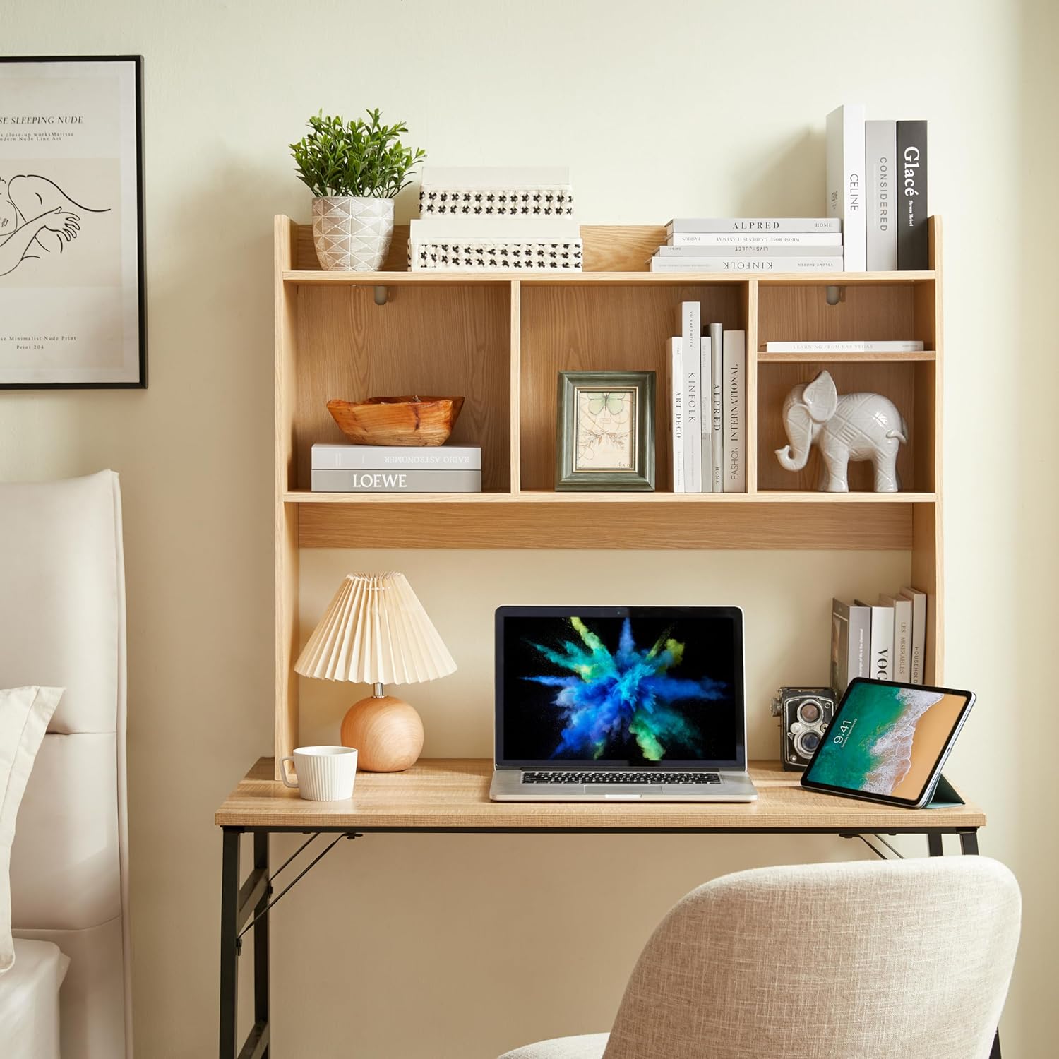 Desktop Bookshelf, Wooden Desk Storage Hutch with 6 Shelves for Computer Desk, 3-Tier Desktop Display Organizer Rack for Office Home (Natural)